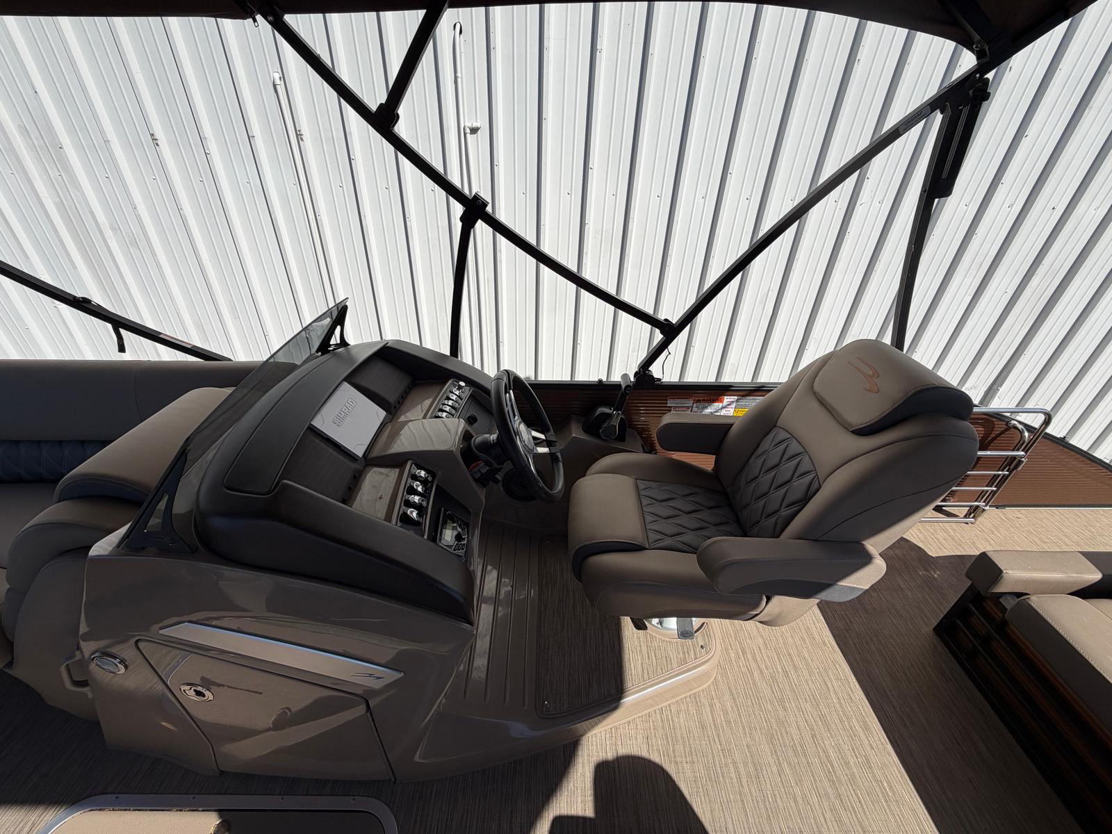 The 2023 Bennington 24 Lxsb pontoon boat is designed with both comfort and convenience in mind. Its spacious 24-foot deck offers plenty of room for entertaining, lounging, and making memories with loved ones. The open layout allows for easy movement throughout the boat, while plush seating ensures everyone can relax in style. The pontoon’s sturdy construction and high-quality materials reflect Bennington’s dedication to excellence, providing peace of mind and lasting value.This used pontoon boat for sale also features a modern helm with intuitive controls, making navigation a breeze for both seasoned boaters and newcomers alike. The thoughtful design extends to every detail, from the ample storage compartments for your gear and supplies to the stylish accents that set this Bennington boat apart from the competition.