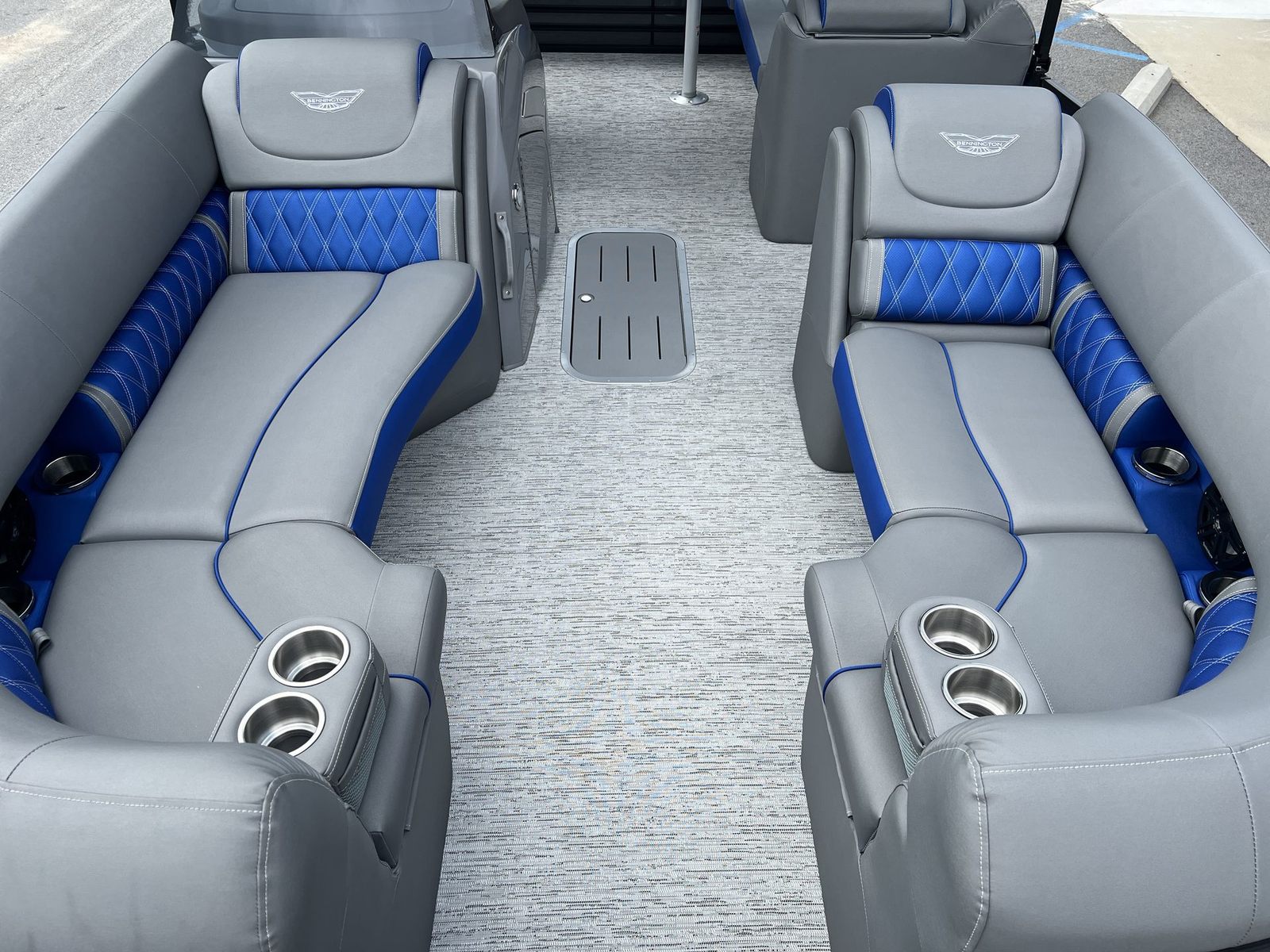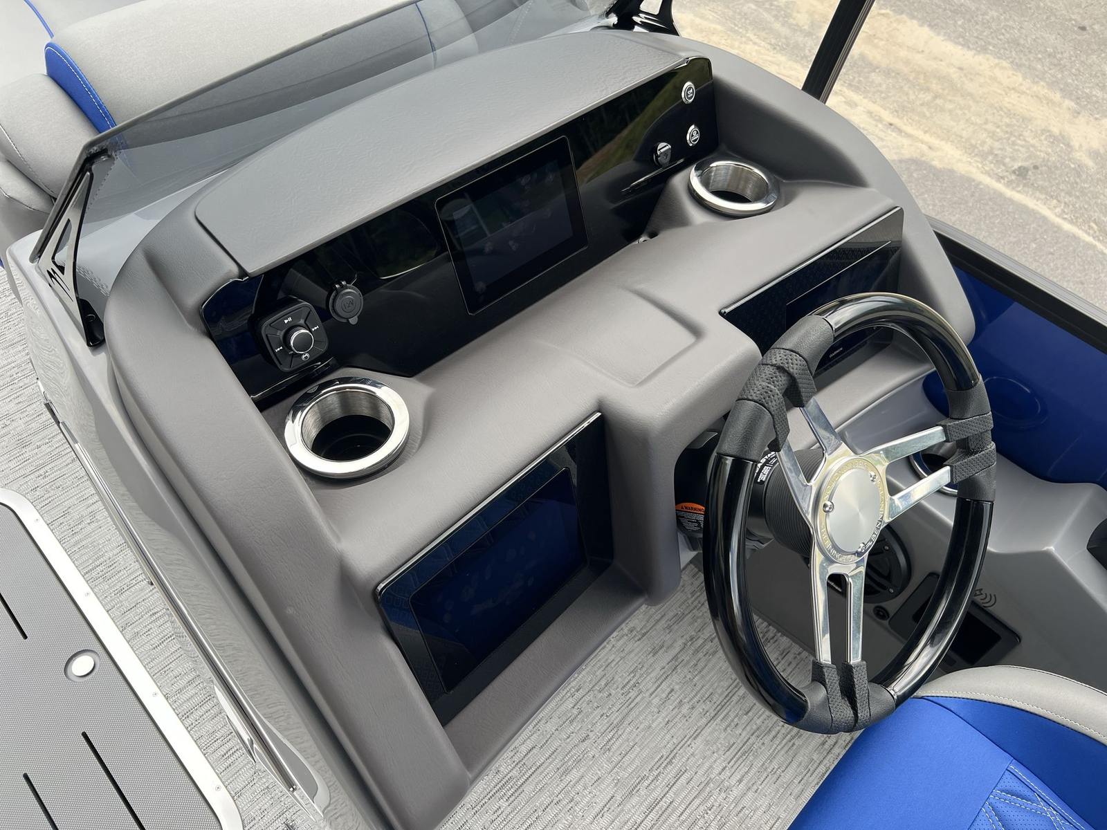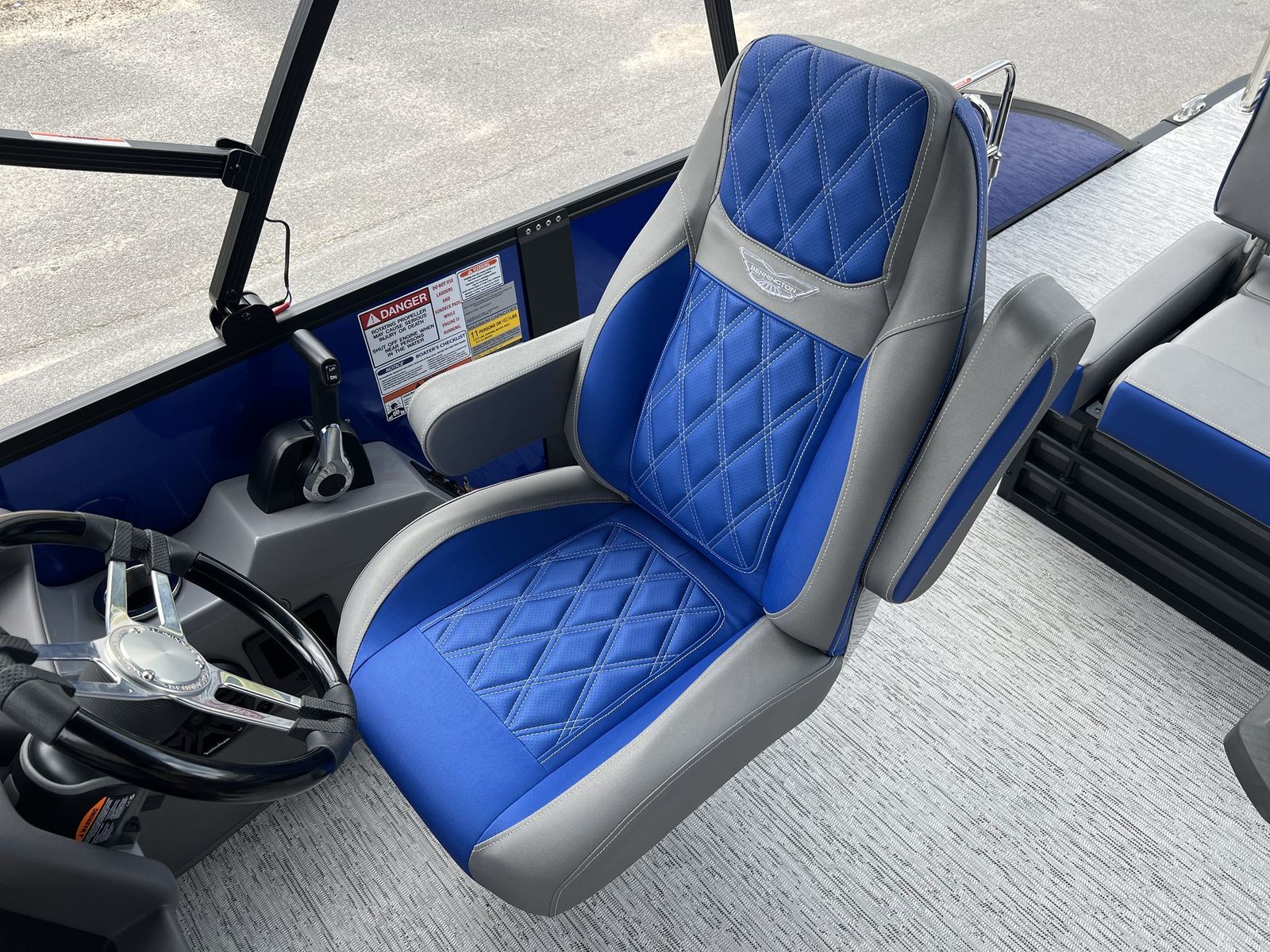 The 2026 Bennington 24 Lxssb ESP is loaded with special features that enhance both its functionality and appeal. The aft stereo control unit allows you to manage your music from the rear of the boat, keeping the party going no matter where you are onboard. Accent lighting and exterior side lighting create a captivating ambiance for evening cruises, while blackout logos add a touch of modern sophistication to the boat’s exterior. Audiophiles will appreciate the Rockford Fosgate 10" subwoofer and amplifier with a custom enclosure upgrade, delivering deep, rich sound that transforms every outing into a floating concert. The interior is adorned with premium Graphite Simtex upholstery and Zebrawood Matte Slate accents, offering a refined and inviting atmosphere that is both stylish and durable.