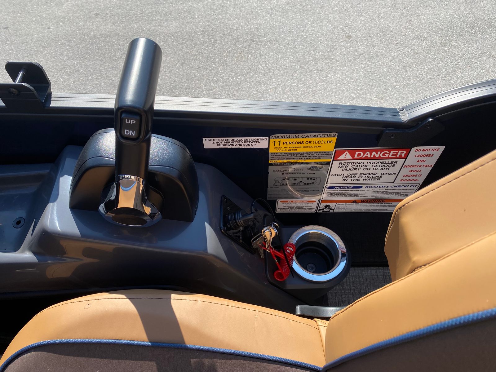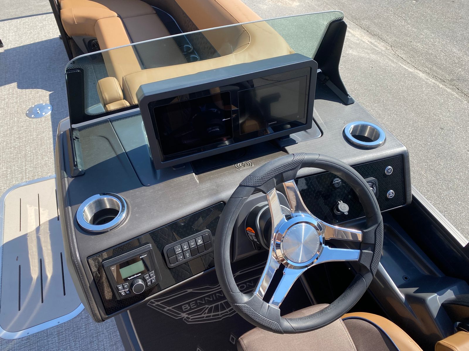 At the heart of the Bennington 24 MFB ESP is a single Yamaha F300XA engine, delivering a robust 300 horsepower. This powerful setup ensures smooth acceleration, reliable cruising speeds, and the ability to handle a variety of water conditions with ease. The Yamaha Mechanical Pre-Rig and Power Hydraulic Assist Steering provide precise control and effortless maneuverability, making docking and navigating tight spaces a breeze. Whether you’re gliding across calm lakes or tackling choppier waters, this pontoon boat offers a responsive and exhilarating ride that will impress even the most seasoned boaters.