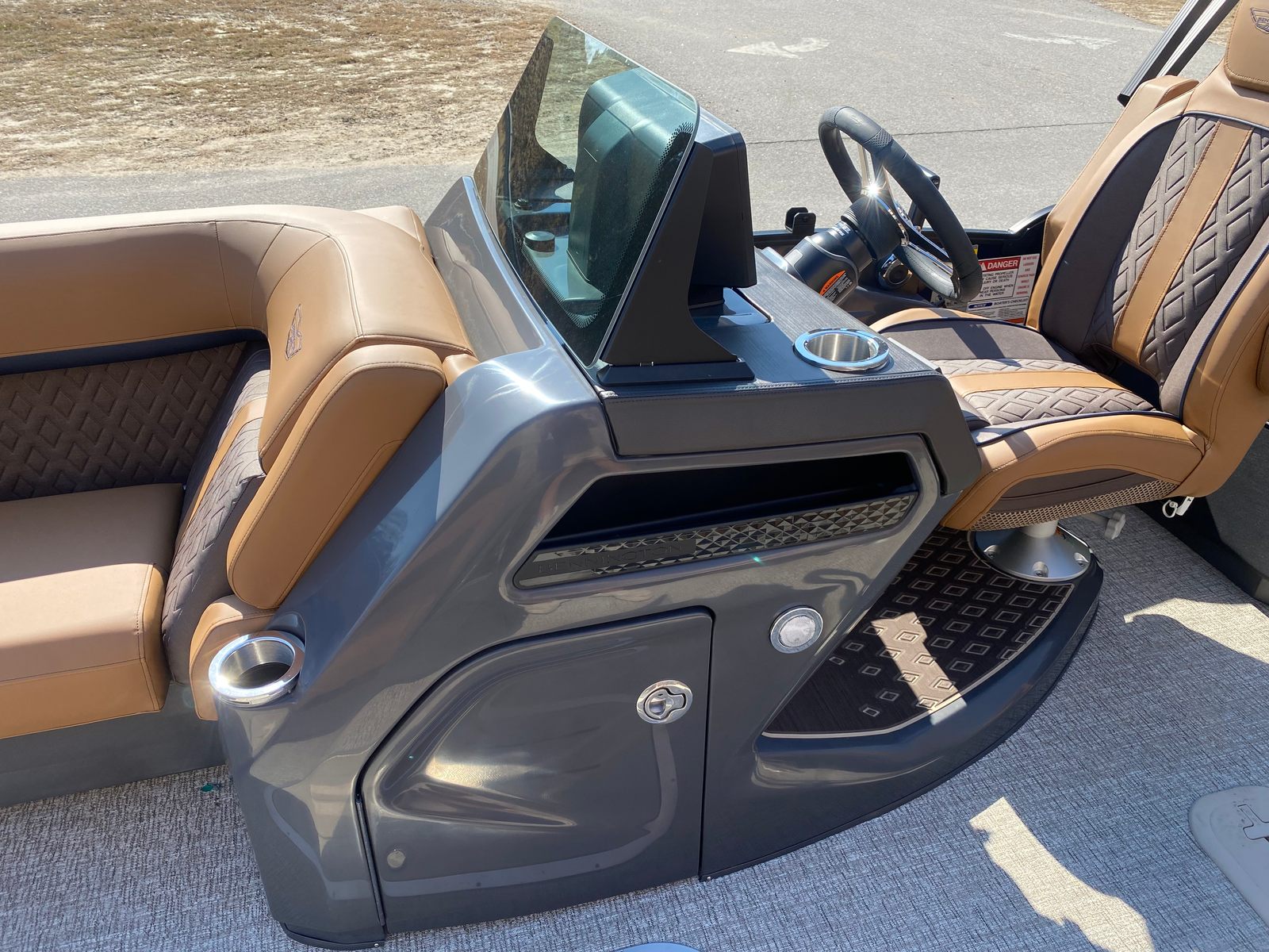 In summary, the 2026 Bennington 24 MFB ESP pontoon boat for sale is a remarkable blend of power, style, and versatility. With its impressive 300 horsepower Yamaha engine, striking Midnight Blue and Satin Black accents, luxurious Modesto Brown Veneto interior, and advanced lighting features, this new Bennington boat for sale offers an unparalleled boating experience. The spacious design, practical amenities, and innovative technology make it the perfect choice for families, anglers, and anyone seeking fun and relaxation on the water. Don’t miss your chance to own this exceptional pontoon – contact the dealer today to learn more and start your next adventure with the Bennington 24 MFB ESP.