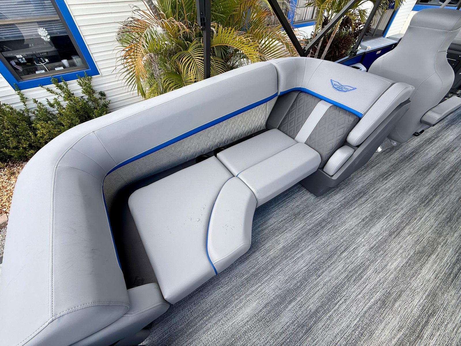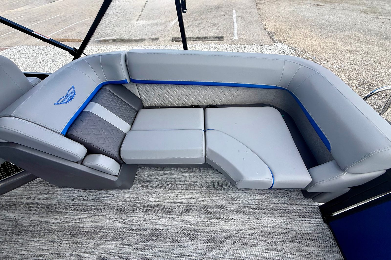 Owning the Bennington 24 MFB SPS pontoon boat means embracing a lifestyle of fun, relaxation, and social connection. The spacious deck layout is perfect for hosting gatherings, whether you’re enjoying a sunset cruise with friends or a family picnic on the water. The comfortable seating and ample room allow everyone to stretch out and unwind, while the elevated console ensures the captain has a clear view and easy access to all controls. The thoughtfully designed features make every outing enjoyable, from leisurely cruises to action-packed water sports.The double bimini provides extensive shade, keeping everyone cool and comfortable even on the hottest days. The stylish finishes and premium materials create an inviting atmosphere, making every trip feel like a luxury getaway. With its powerful engine and responsive handling, the 24 MFB SPS is as fun to drive as it is to relax on, offering the perfect balance of excitement and comfort.