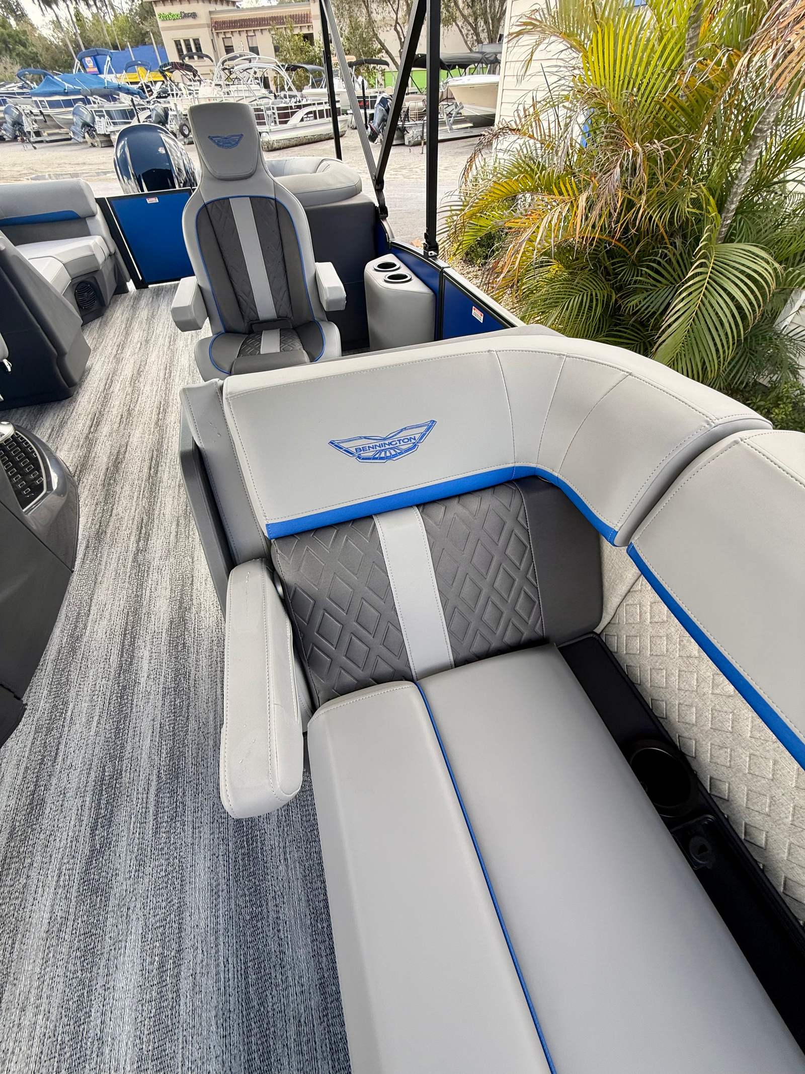 The 2026 Bennington 24 MFB SPS is more than just a pontoon boat for sale – it’s an invitation to experience the best that boating has to offer. With its powerful 200 HP engine, advanced Yamaha pre-rig, and a host of premium features including the Sunshine Package, elevated console, M Series furniture, Zebrawood accents, stylish canvas, double bimini, and protective rub rail, this Bennington boat for sale is designed to impress. Whether you’re a seasoned boater or new to the water, the 24 MFB SPS offers the perfect blend of luxury, performance, and practicality.Don’t miss your chance to own this exceptional pontoon and create lasting memories with family and friends. Contact your local dealer today to learn more about the 2026 Bennington 24 MFB SPS and start your next adventure on the water!