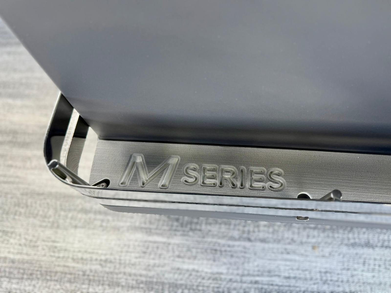 The 2026 Bennington 24 MFB SPS comes loaded with special features that set it apart from other pontoon boats for sale. The Sunshine Package infuses the deck with a bright, inviting atmosphere, perfect for sunny days on the water. The elevated console with Pocket Mythos provides a commanding view and easy access to controls, enhancing both safety and convenience. The base furniture from the M Series offers plush seating and ergonomic design, ensuring every passenger enjoys maximum comfort. The interior is adorned with Zebrawood Matte Slate accents, adding a touch of modern elegance to the overall aesthetic.For those who appreciate style and durability, the canvas in Midnight Black and Shoreline Grey creates a striking visual contrast, while the double 16.5-foot black bimini offers generous shade and protection from the elements. The black rub rail insert not only adds to the boat’s sleek appearance but also provides extra protection during docking and mooring. Every detail of the 24 MFB SPS is meticulously crafted to enhance your time on the water.