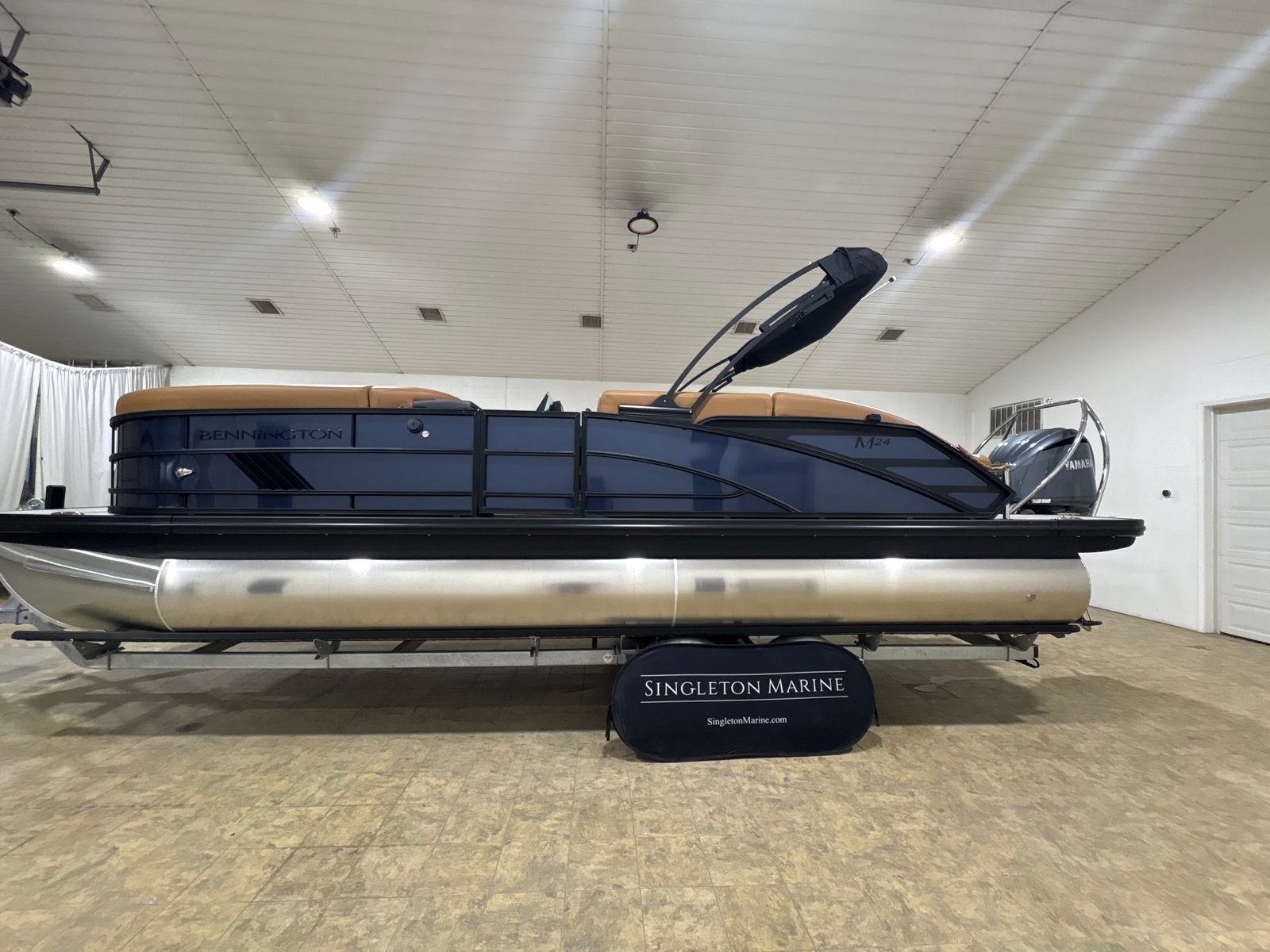 The 2026 Bennington 24 MSB ESP is a standout pontoon boat for sale, combining cutting-edge features, powerful performance, and luxurious comfort. With its Yamaha F250XSB engine, ESP Performance Package, electric power top Bimini, advanced touchscreen display, and Rockford Fosgate lighted speakers, this Bennington boat for sale is designed to impress and inspire. The Blackout Luxe Package and midnight black canvas add a touch of elegance, while practical features like aft pop-up cleats and power hydraulic assist steering make ownership a breeze.If you’re ready to elevate your boating experience and create lasting memories on the water, the Bennington 24 MSB ESP is the perfect choice. Discover the joy, versatility, and excitement that this exceptional pontoon offers, and contact your local dealer today to learn more about making it yours.