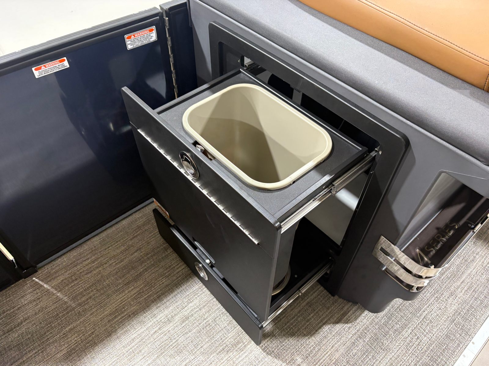 Practicality meets luxury in the Bennington 24 MSB ESP. The aft pop-up cleats simplify the docking process, making it easy to secure your boat at any location. The ESP Performance Package enhances fuel efficiency and handling, so you can spend more time enjoying the water and less time worrying about refueling or maneuvering. The spacious layout provides plenty of room for gear, coolers, and personal items, ensuring that everything you need for a day of fun is always within reach.The midnight black canvas not only adds style but also offers protection from the elements, keeping your boat looking pristine. The power hydraulic assist steering makes navigation effortless, even in challenging conditions, while the advanced touchscreen display keeps you informed and in control. Every feature is designed to make ownership easy, enjoyable, and worry-free.