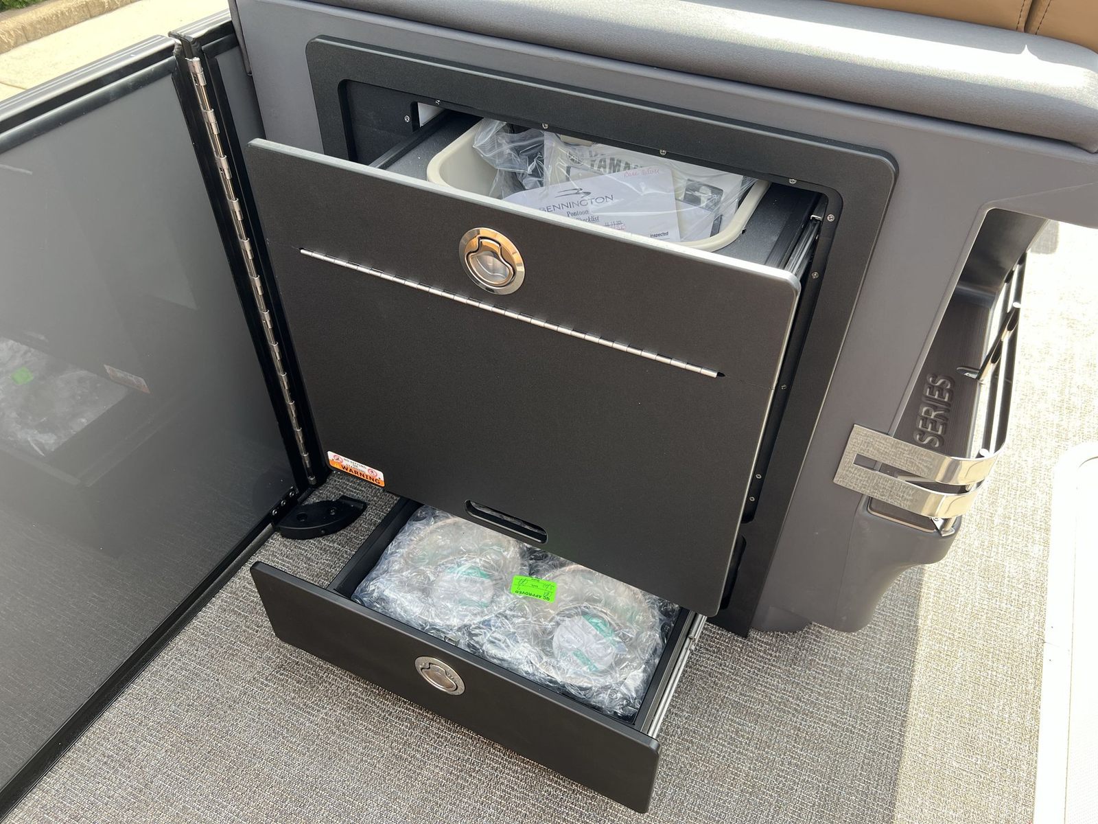 Owning the Bennington 24 MSB SPS means embracing a lifestyle of fun, relaxation, and adventure. The spacious deck layout is perfect for hosting gatherings, enjoying meals, or simply lounging in the sun. The comfortable seating and thoughtfully designed furniture make every trip enjoyable, whether you are out for a quick spin or spending the entire day on the water. The advanced lighting system creates a vibrant and inviting atmosphere, making evening cruises truly magical.The high-performance Yamaha engine ensures that you have the power and reliability needed for a variety of activities, from leisurely cruises to exciting watersports. The intuitive controls and ergonomic console make piloting the boat a breeze, even for those new to boating. With its combination of luxury and functionality, the Bennington 24 MSB SPS is designed to maximize your enjoyment and minimize any hassles.