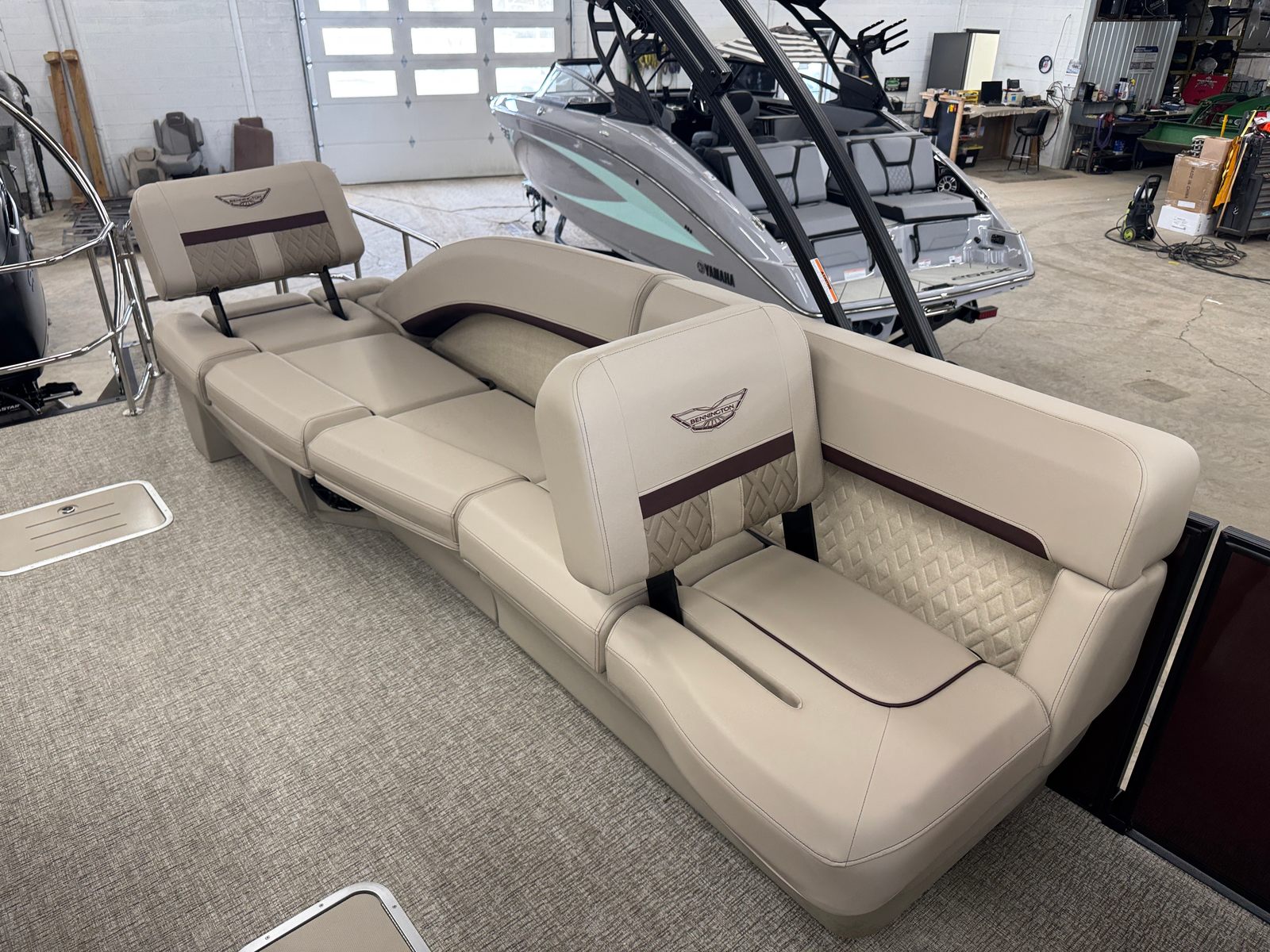 The Bennington 24 MSL ESP is loaded with special features designed to enhance comfort, style, and convenience. The Dolce Veneto interior creates a luxurious and inviting atmosphere, while the Interior Accent in Sunset Red Simtex adds a touch of sophistication and warmth. The removable flag pole with an American flag is a patriotic touch, perfect for holiday weekends or special occasions on the water.For those who appreciate ambiance, the RGB Control M Series lighting system allows you to customize the mood with vibrant colors, while the Toekick Lights (2-62") provide subtle illumination for evening cruises or nighttime gatherings. Every detail, from the premium upholstery to the carefully selected color accents, is designed to create a memorable and enjoyable boating experience.