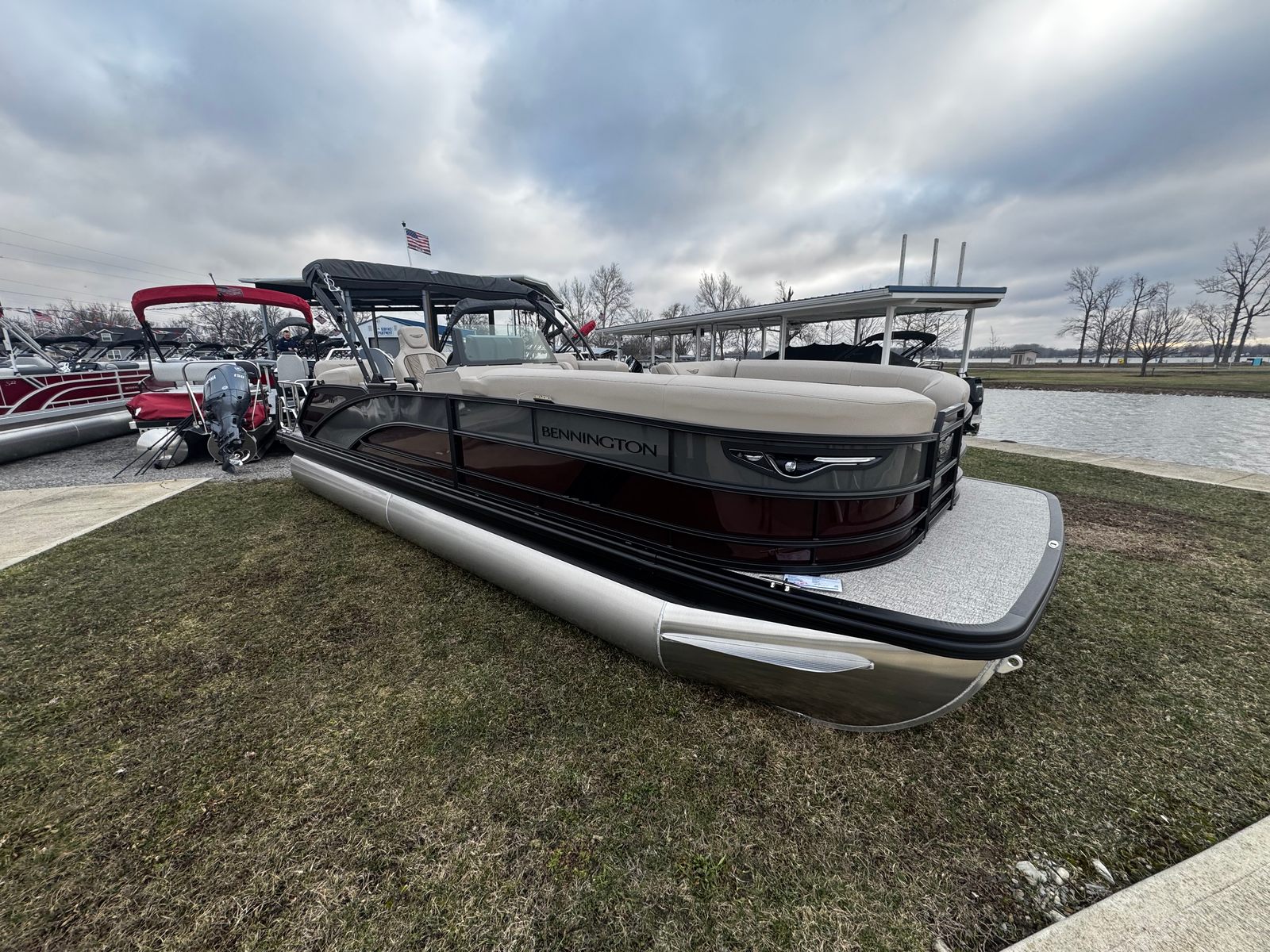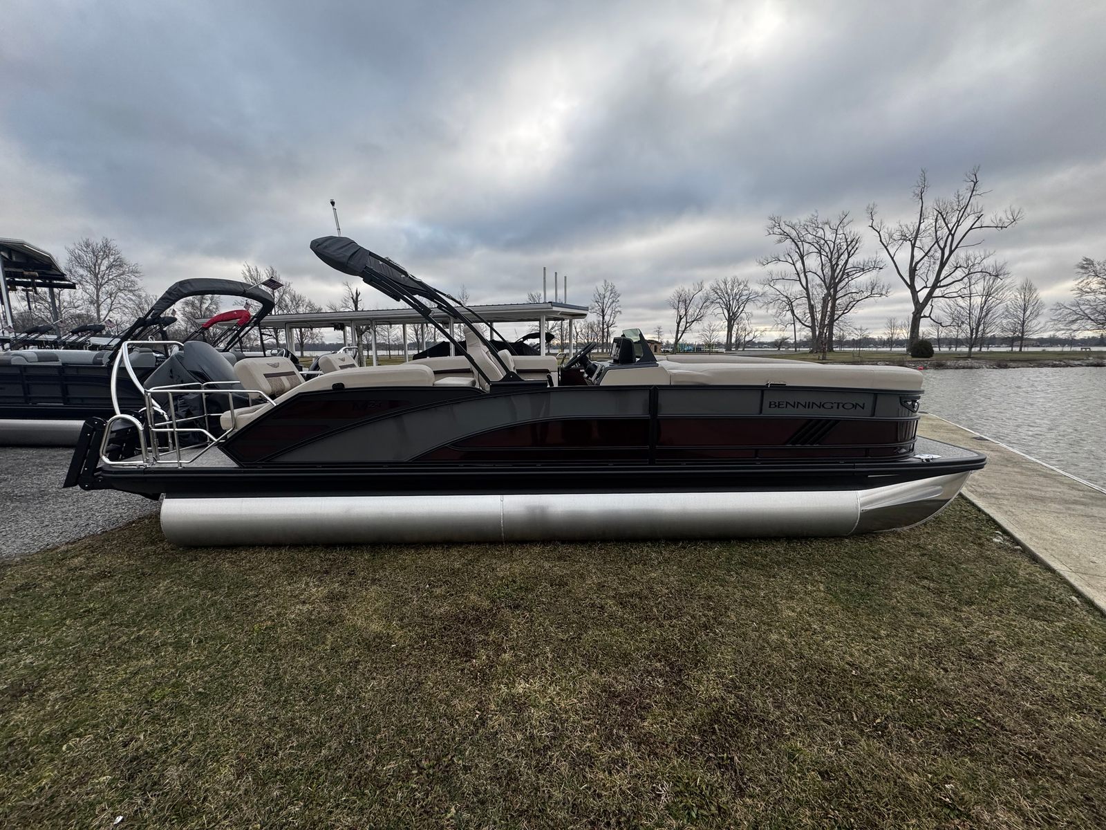 The 2026 Bennington 24 MSL ESP is a brand-new pontoon boat that measures an impressive 26.25 feet in length, offering ample space for friends and family to relax and enjoy the open water. This Bennington boat for sale is crafted with meticulous attention to detail, ensuring a premium boating experience from bow to stern. The sleek exterior features a striking Panel in Smooth Sunset Red, complemented by an Accent in Smooth Anthracite, creating a bold and modern look that stands out at any marina or lakefront.