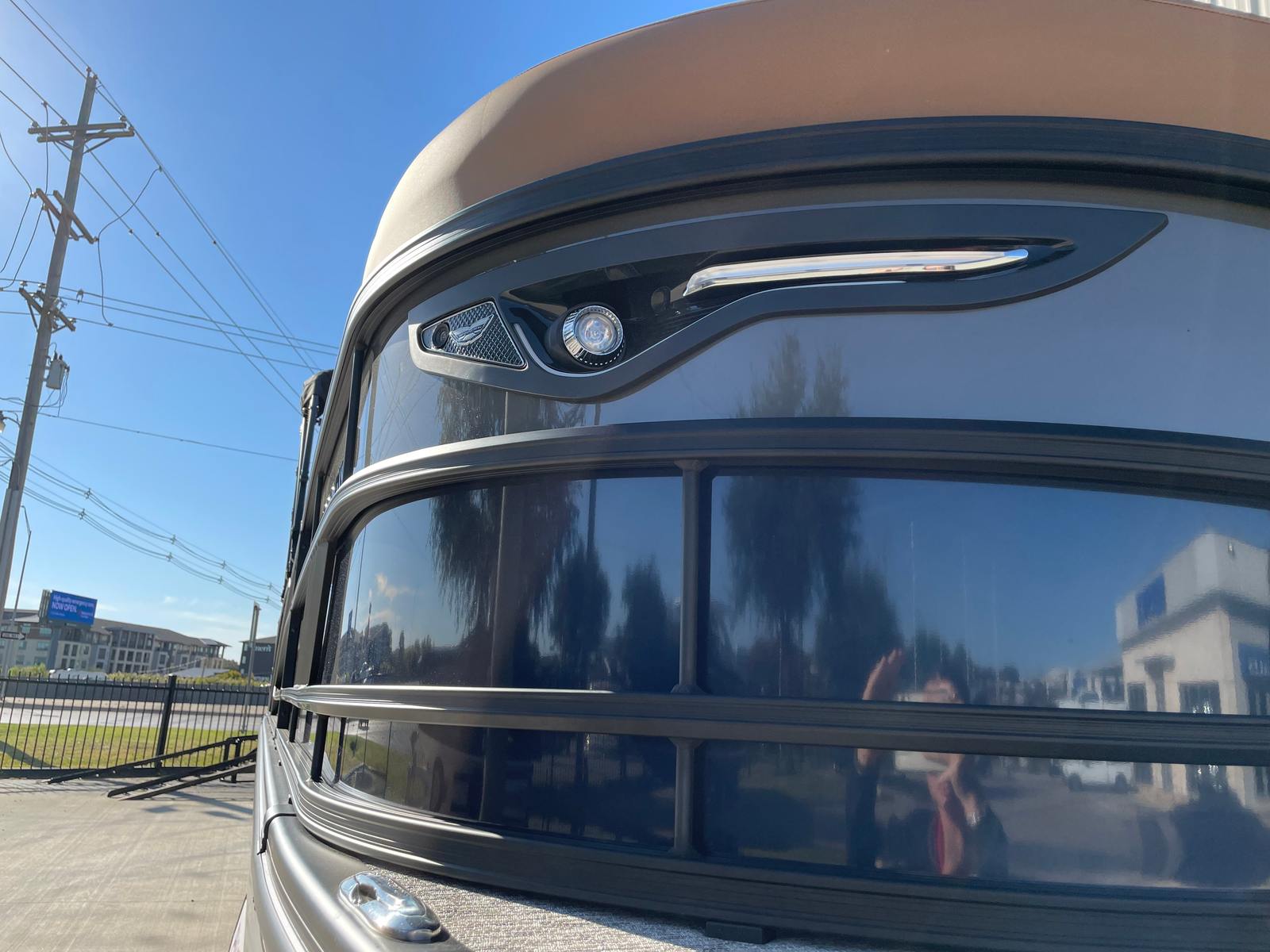 Step aboard the Bennington 24 MSL SPS Plus and discover a world of premium features designed to enhance every moment. The RGB Control M Series allows you to customize the ambiance with vibrant lighting, setting the mood for evening cruises or festive gatherings. Toekick lights add a touch of elegance and safety, illuminating pathways for easy movement around the deck. The Rockford Fosgate M1 Lighted Speakers deliver crystal-clear sound, transforming your pontoon into a floating entertainment hub, while illuminated cupholders keep your refreshments visible and accessible, even after sunset.The elevated console with Pocket Mythos offers ergonomic controls and convenient storage, ensuring everything you need is within reach. Canvas in Midnight Black provides stylish protection from the elements, while lumbar lighting adds a subtle glow for nighttime comfort. Every feature is thoughtfully integrated to maximize enjoyment and functionality, making this Bennington boat for sale a standout in its class.