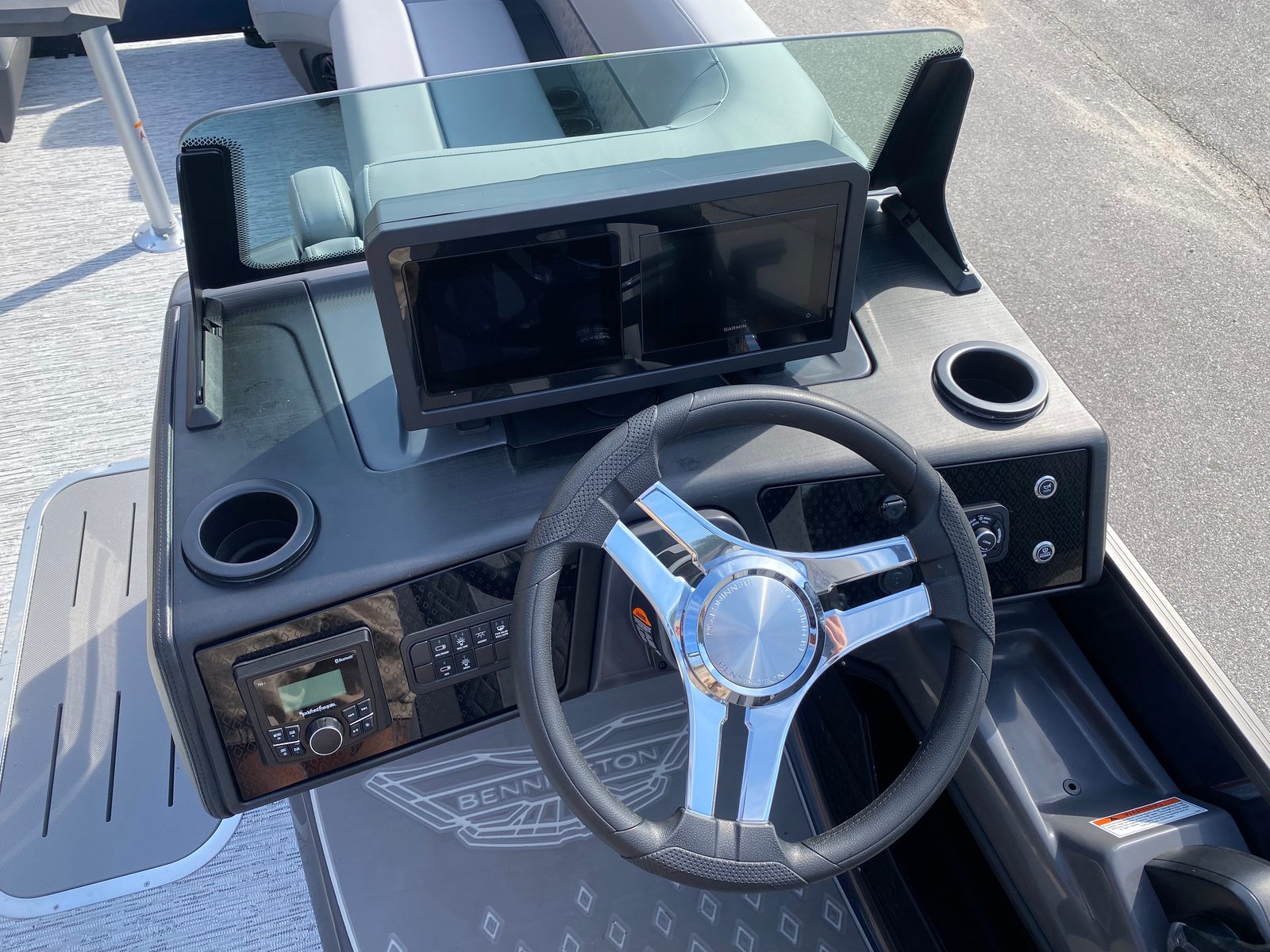 Step aboard the Bennington 24 MSL SPS and you will immediately notice its attention to detail and luxurious appointments. The exterior is finished in a striking Smooth Midnight Blue panel, accented by Smooth Satin Black for a modern, sophisticated look. The Graphite Veneto adds a touch of elegance, while the Interior Accent in Midnight Blue Simtex creates a refined and inviting atmosphere.Lighting plays a key role in setting the mood on this pontoon. The RGB Control M Series allows you to customize the ambiance with vibrant, color-changing lights, while the exterior side lighting and toekick lights (2-62") add both style and safety for evening cruises. Entertainment is elevated with Rockford Fosgate M1 lighted speakers, delivering premium sound quality and visual flair for your on-water gatherings.