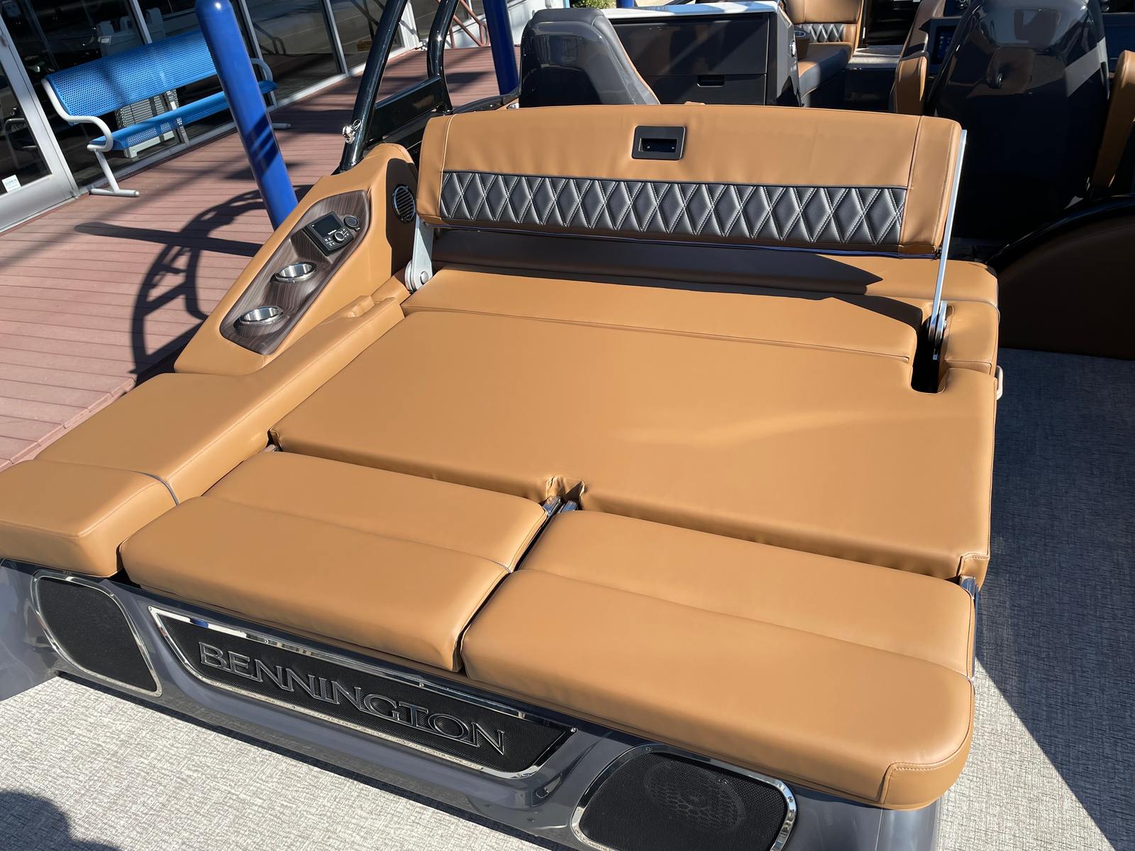 The Bennington 24 Rtsba V is loaded with special features designed to elevate your boating experience. Nine illuminated cupholders are strategically placed throughout the deck, ensuring your favorite beverages are always within reach, day or night. Exterior side lighting and toekick lights (2-72" 2-Bwrdr) create a captivating ambiance, perfect for evening cruises or dockside gatherings. The blackout logos add a touch of modern elegance, distinguishing this pontoon from the crowd.Music lovers will be thrilled with the premium Rockford Fosgate audio system, which includes two 8" M2 Arch Can Speakers, a powerful 10" M1 Subwoofer, and a dual M2 amplifier upgrade. The Rockford Fosgate PMX-1R Head Unit Remote, complete with Sirius Satellite Radio, ensures you have access to your favorite playlists and stations wherever your journey takes you. These features combine to create an immersive sound experience, transforming every trip into a floating concert.