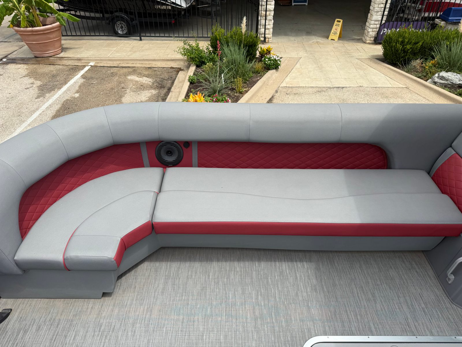 The Bennington 25 Lsba pontoon boat is designed with both comfort and functionality in mind. Its spacious 25-foot deck provides plenty of room for guests to spread out, relax, and enjoy the scenery. The open layout is perfect for social gatherings, allowing everyone to move freely and interact with ease. The pontoon’s sturdy construction and high-quality materials ensure durability and low maintenance, so you can spend more time enjoying the water and less time worrying about upkeep.Special features of the 2023 Bennington 25 Lsba include a powerful 250-horsepower engine, which enhances both speed and maneuverability. The boat’s design maximizes stability, making it ideal for a variety of activities, from leisurely cruises to lively parties. The seating arrangement is thoughtfully planned to provide comfort and convenience, with plush upholstery and ergonomic support. The deck layout also allows for easy customization, so you can tailor the space to suit your specific needs and preferences.
