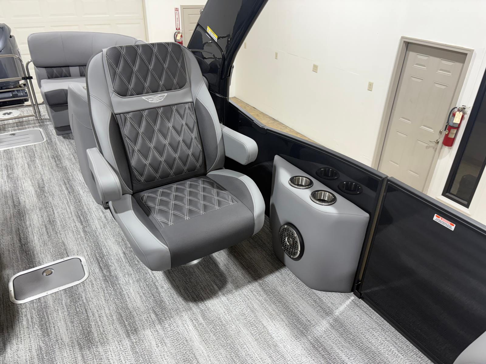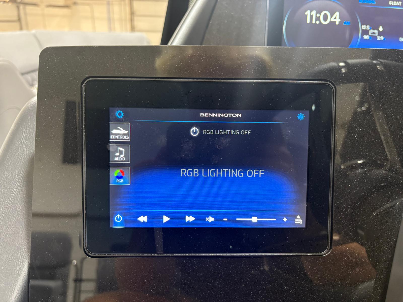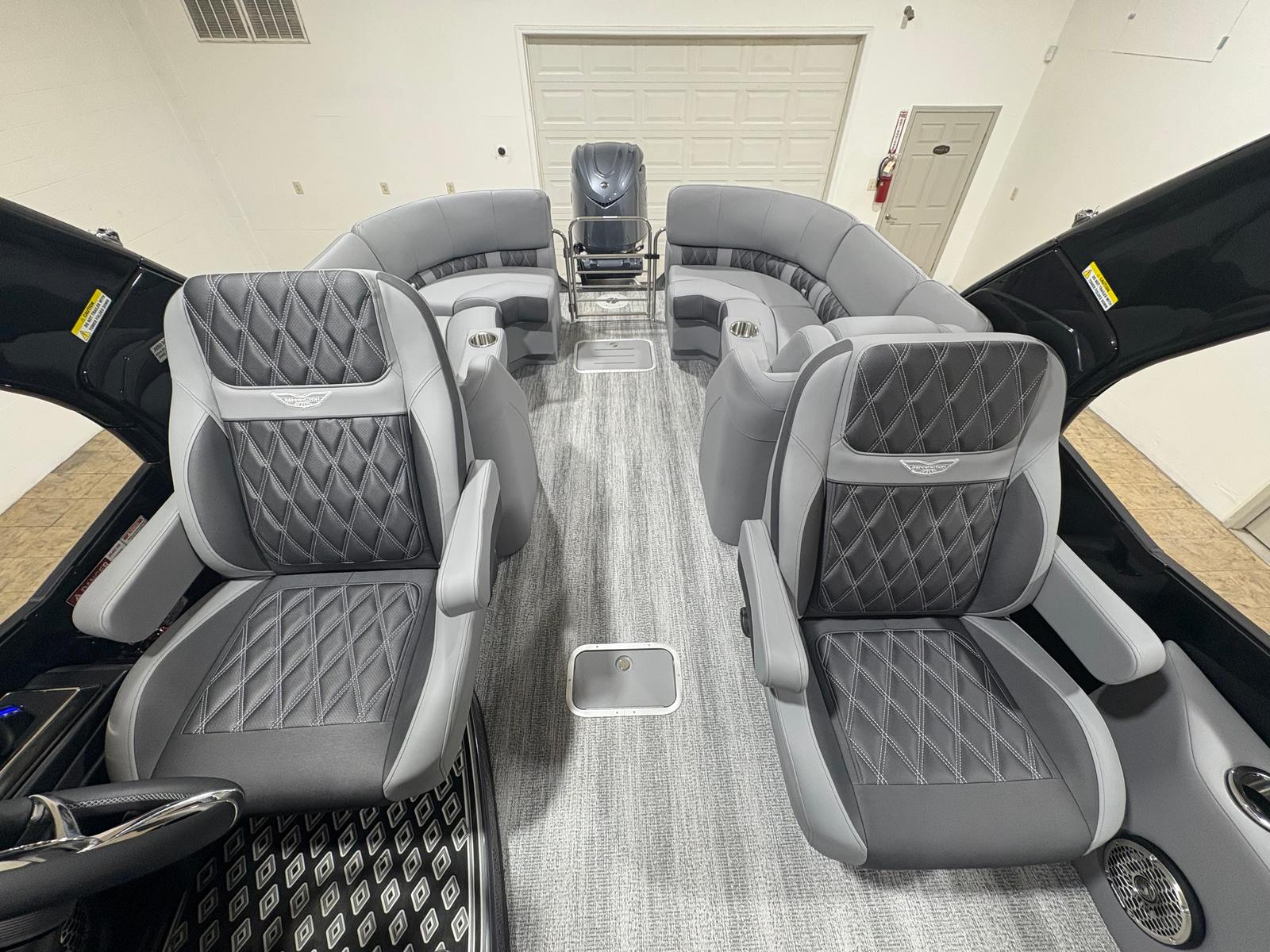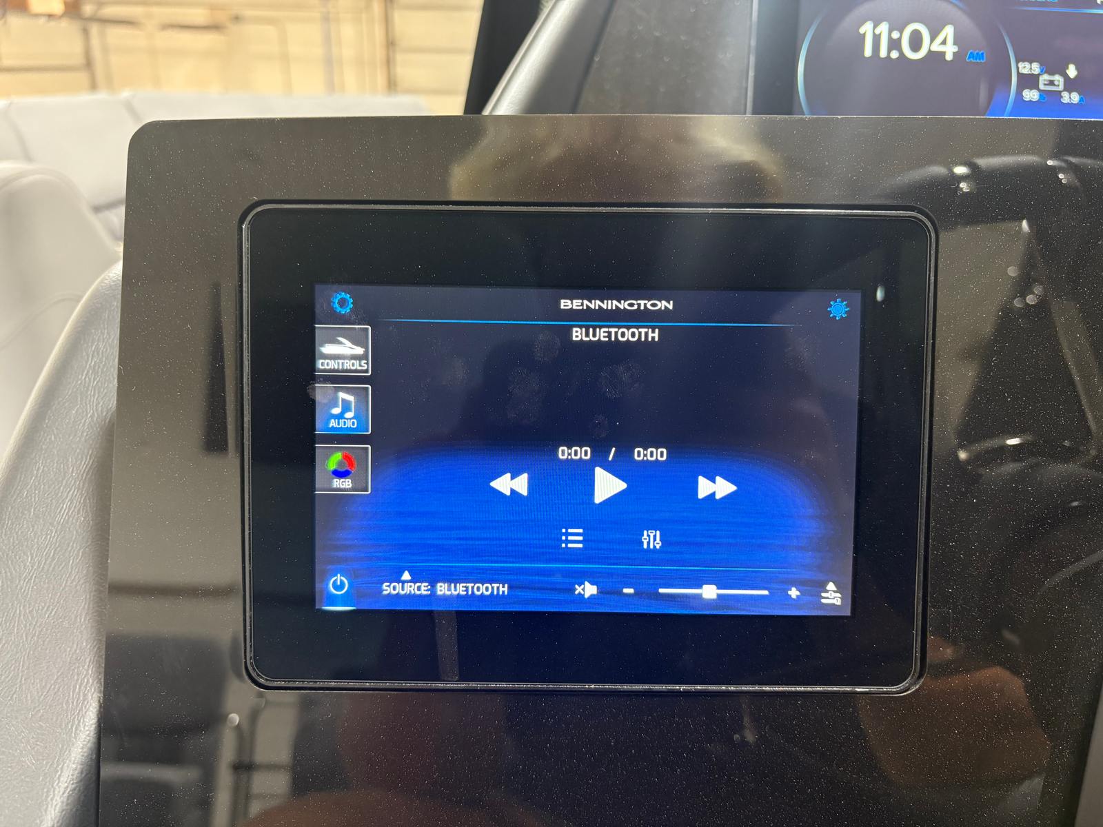 Step aboard the Bennington 25 Qfba ESP and discover a world of premium features designed to enhance your boating experience. The illuminated cupholders (8) add a touch of elegance and convenience, ensuring your favorite beverages are always within reach, even during evening cruises. Exterior side lighting and underwater lighting create a captivating ambiance, illuminating the boat’s sleek lines and the surrounding water for added safety and visual appeal. Toekick lights, with two 37-inch and two 62-inch fixtures, provide subtle illumination that enhances both aesthetics and functionality.The blackout logos lend a modern, sophisticated look, while the Rockford Fosgate audio system transforms your pontoon into a floating entertainment hub. With six 6.5-inch M2 speakers throughout the boat, two additional speakers on the arch, two 8-inch M2 speakers in the Fastback area, and a powerful 10-inch M2 subwoofer, you’ll enjoy crystal-clear sound and deep bass for your favorite playlists. The dual PM Punch amplifier upgrade ensures every note is delivered with precision and power, making every outing a celebration.Inside the console, you’ll find a stylish graphite finish complemented by Zebrawood matte slate accents, creating an inviting and contemporary atmosphere. Every detail, from the lighting to the audio system, has been thoughtfully selected to maximize comfort, convenience, and enjoyment.
