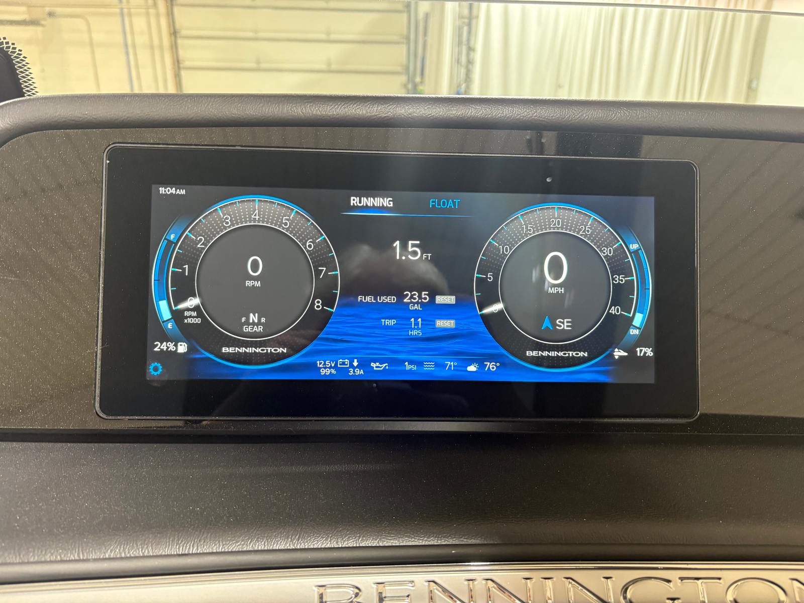 Powering the Bennington 25 Qfba ESP is a robust Yamaha F350XSA engine, delivering an impressive 350 horsepower. With only 1 engine hour, this pontoon is virtually brand new and ready to unleash its full potential on the water. The Yamaha Integrated Steering Pre-Rig ensures smooth, responsive handling, making navigation effortless whether you’re gliding across calm waters or tackling more spirited conditions. The combination of high horsepower and advanced steering technology means you’ll enjoy exhilarating acceleration, precise control, and a quiet, efficient ride every time you set out.