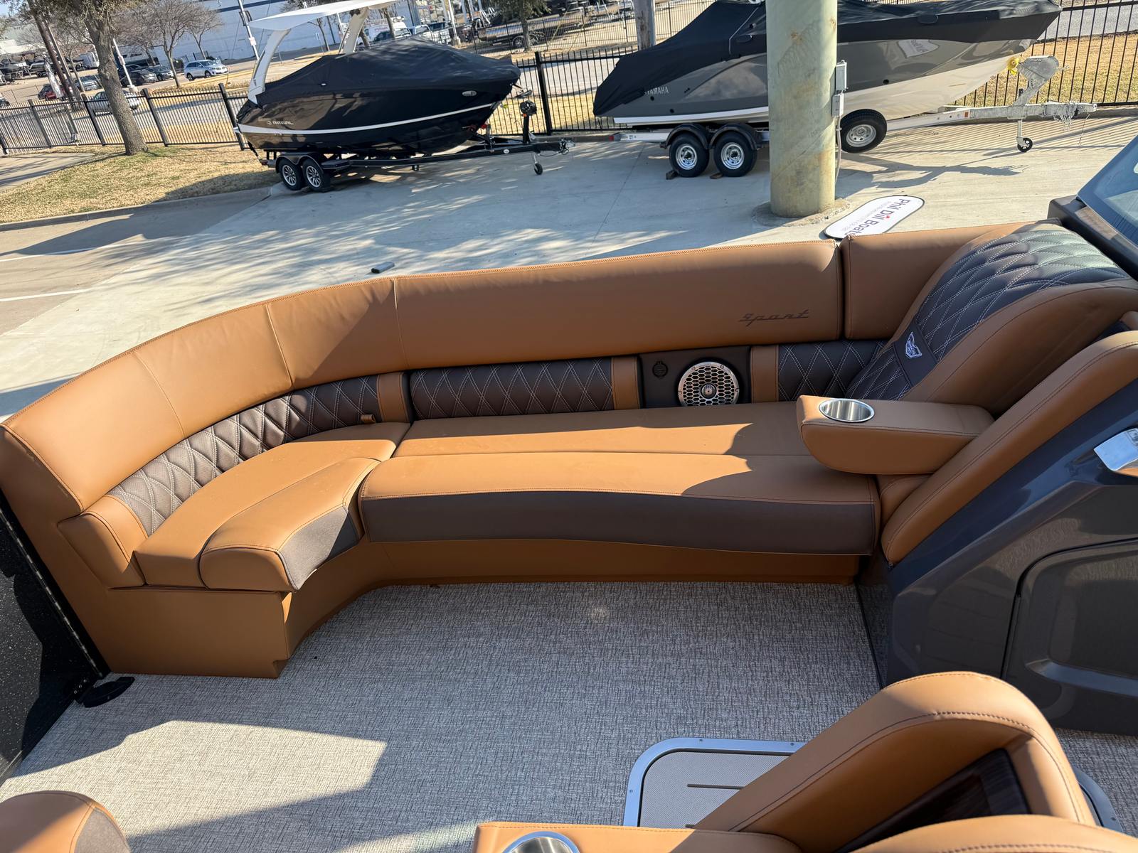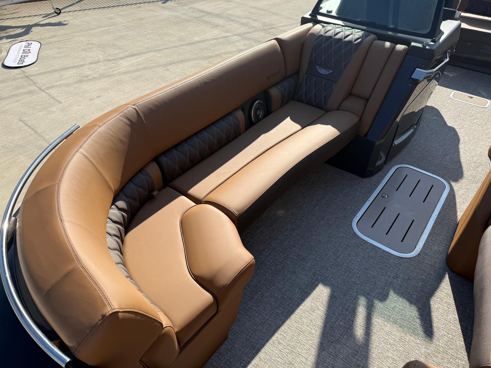 Power and precision define the Bennington 25 Qsba ESP. Equipped with a robust 350-horsepower engine, this pontoon boat delivers exhilarating acceleration and smooth cruising, making it perfect for both leisurely rides and high-energy water sports. The advanced ESP (Elliptical Sport Package) hull design enhances stability and maneuverability, allowing you to navigate tight turns and choppy waters with confidence. Whether you’re towing water toys, racing across the lake, or simply enjoying a sunset cruise, the 25 Qsba ESP’s performance capabilities ensure every outing is a thrill.