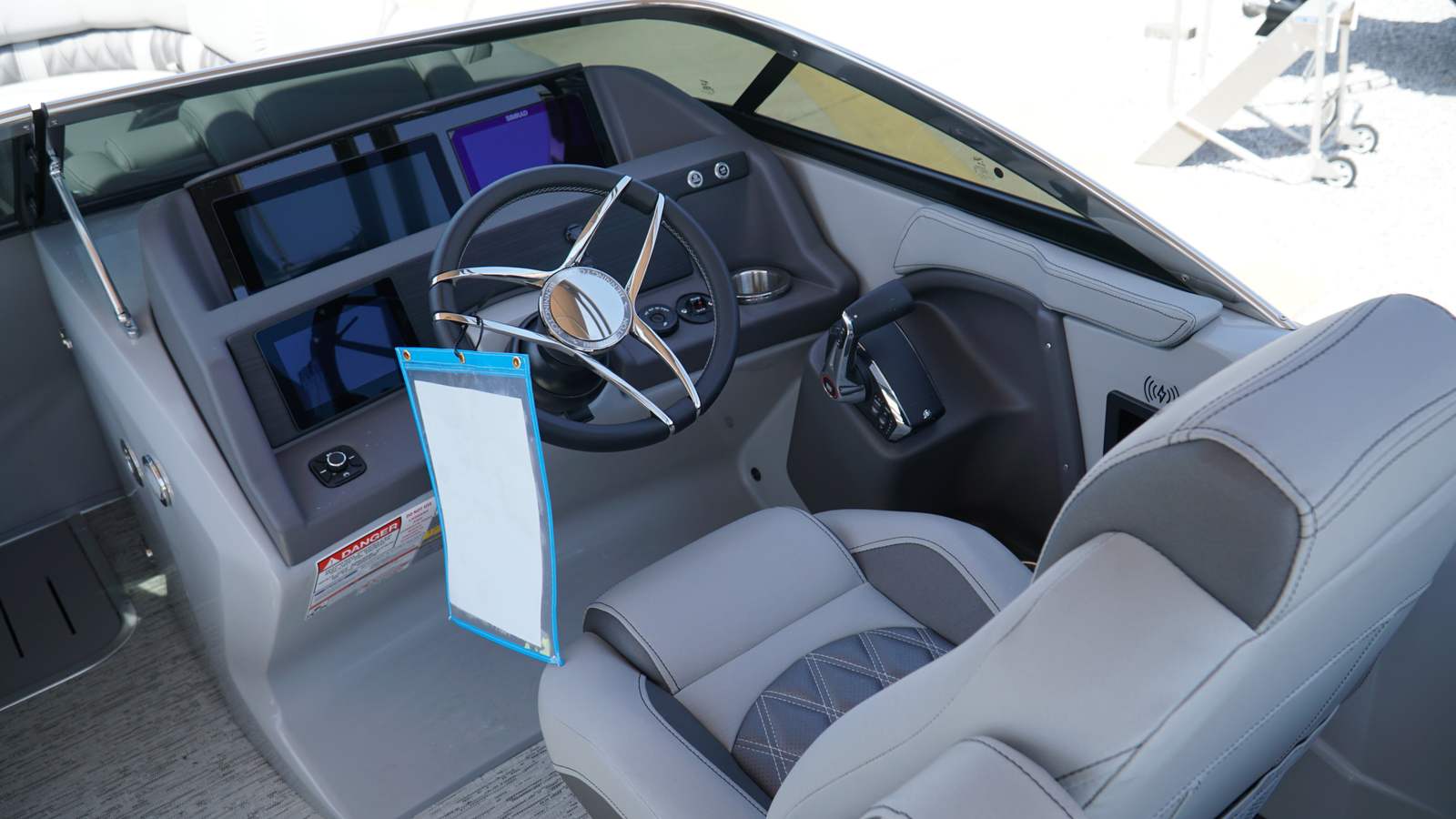 The Bennington 25 Rfbwa ESP is packed with special features that set it apart from other pontoon boats. The interior accent features Perforated Metallic Carbon, adding a touch of modern sophistication to the cabin. The Zebrawood Matte Slate trim brings a refined, natural aesthetic, while the Taupe canvas offers both style and protection from the elements. The base pillowtop diamond-stitched upholstery (R) ensures plush comfort for all passengers, and the arch color match with custom primary panel color creates a cohesive and striking visual appeal. No accent textured surfaces and Silver Simtex materials further enhance the boat’s luxurious feel. Mercury Power Steering rounds out the package, providing effortless maneuverability and a premium driving experience.