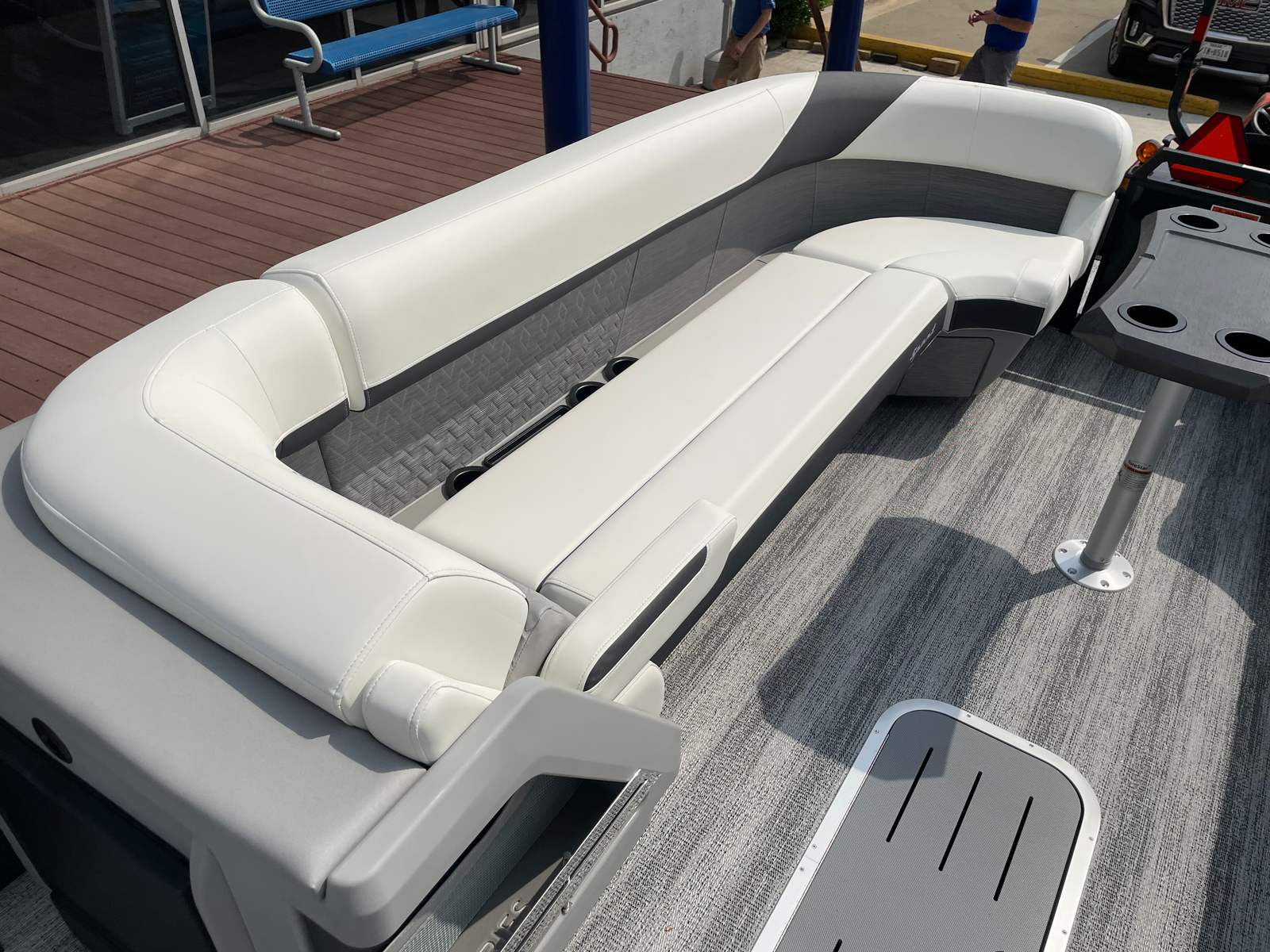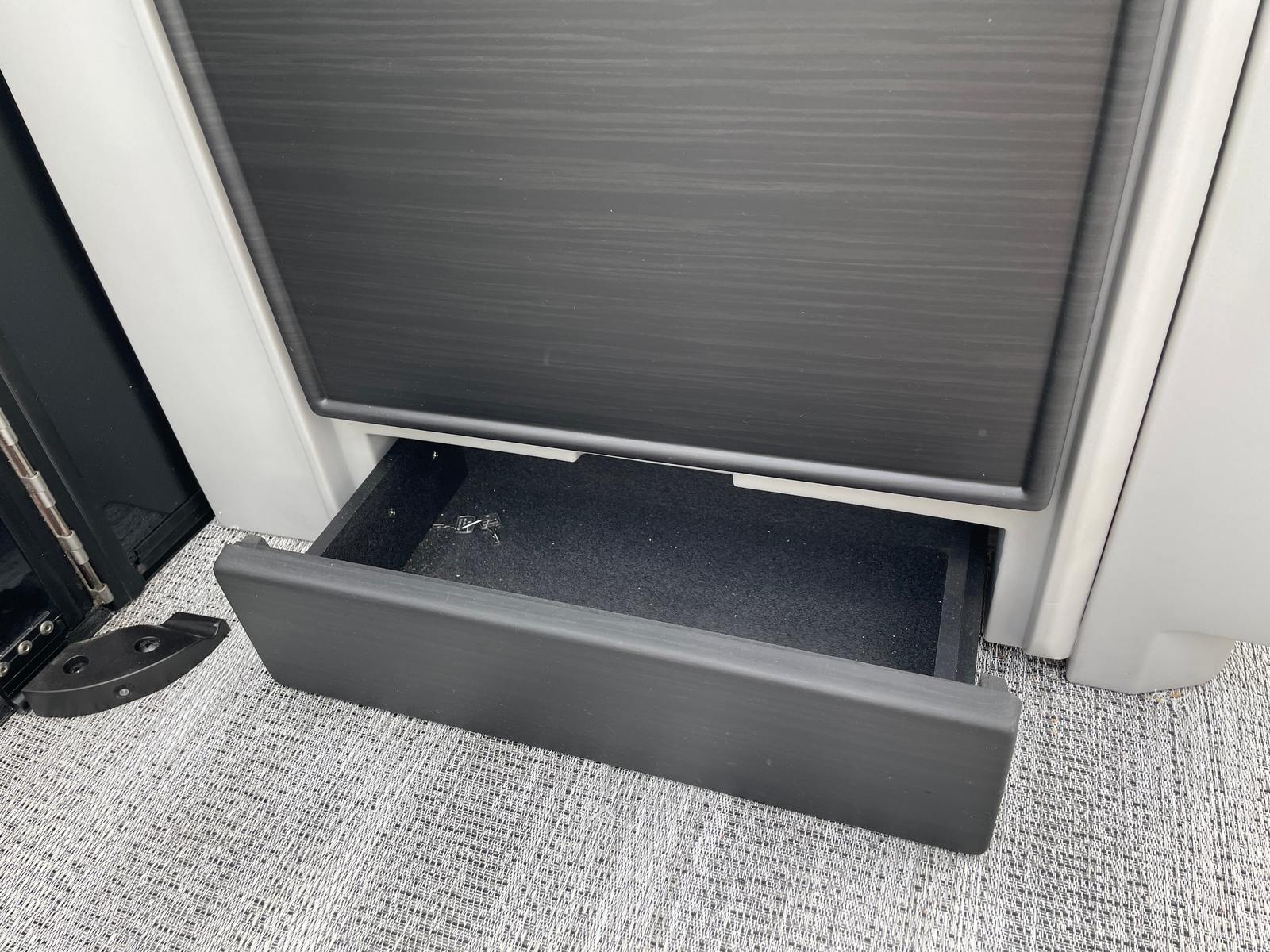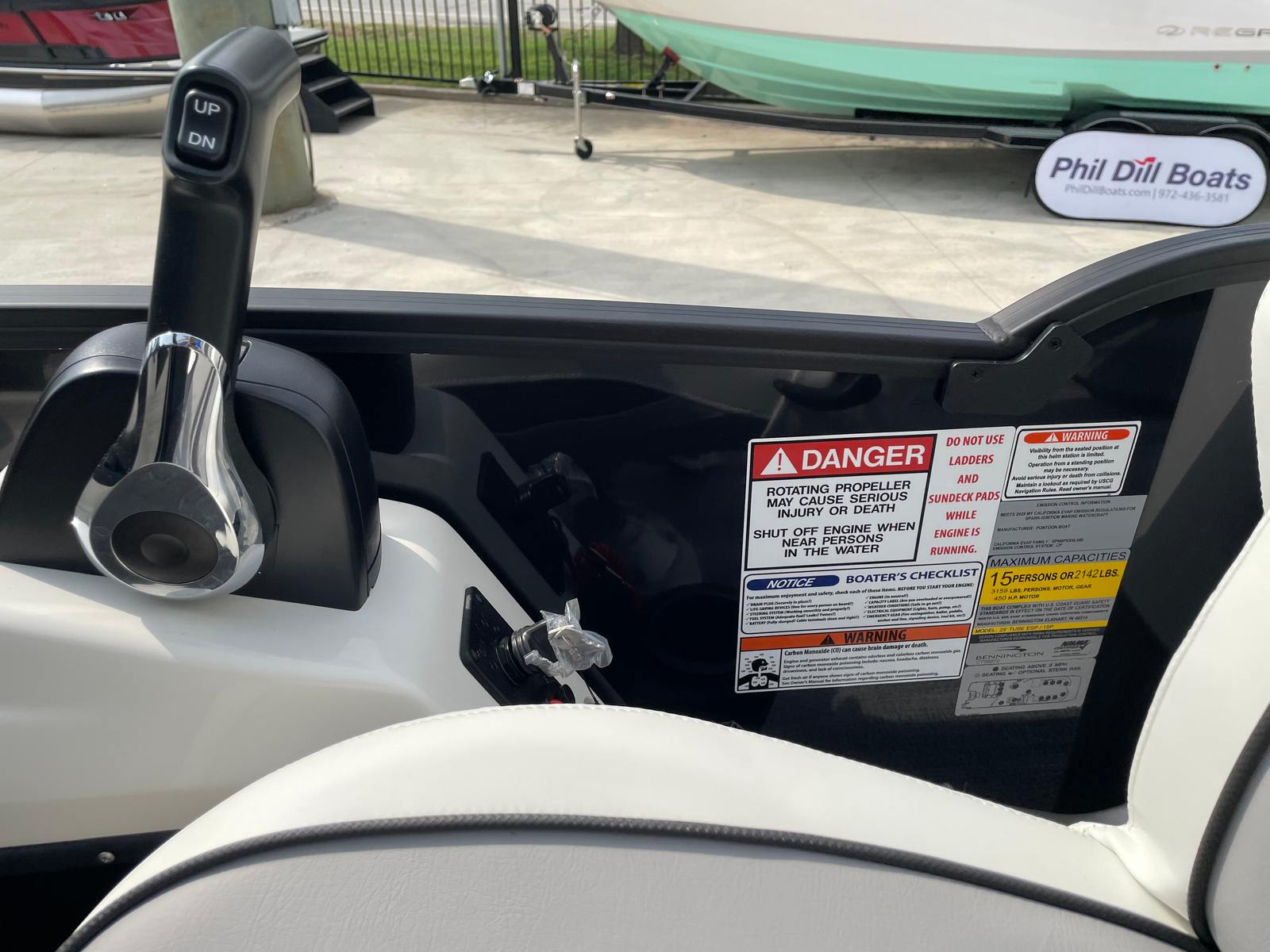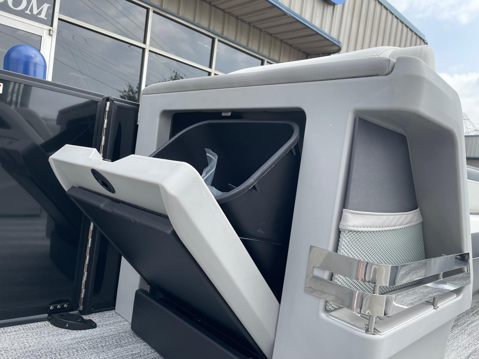 The Bennington 26 MSB ESP is loaded with special features that set it apart from other pontoon boats for sale. The battery system includes a single switch with fuse for added safety and convenience, ensuring reliable power management on every outing. Enjoy an immersive audio experience with RGB speakers that let you set the mood with customizable lighting, while the toekick lights (2-62") and lumbar lighting add a sophisticated ambiance for evening cruises.The elevated console with pocket in Ice White not only enhances visibility and control but also adds a modern, stylish touch to the helm. The Sport Furniture M Series provides plush, ergonomic seating for all your guests, ensuring maximum comfort during long days on the water. The interior is beautifully accented with Zebrawood Matte Slate finishes, creating a refined and inviting atmosphere that is sure to impress.