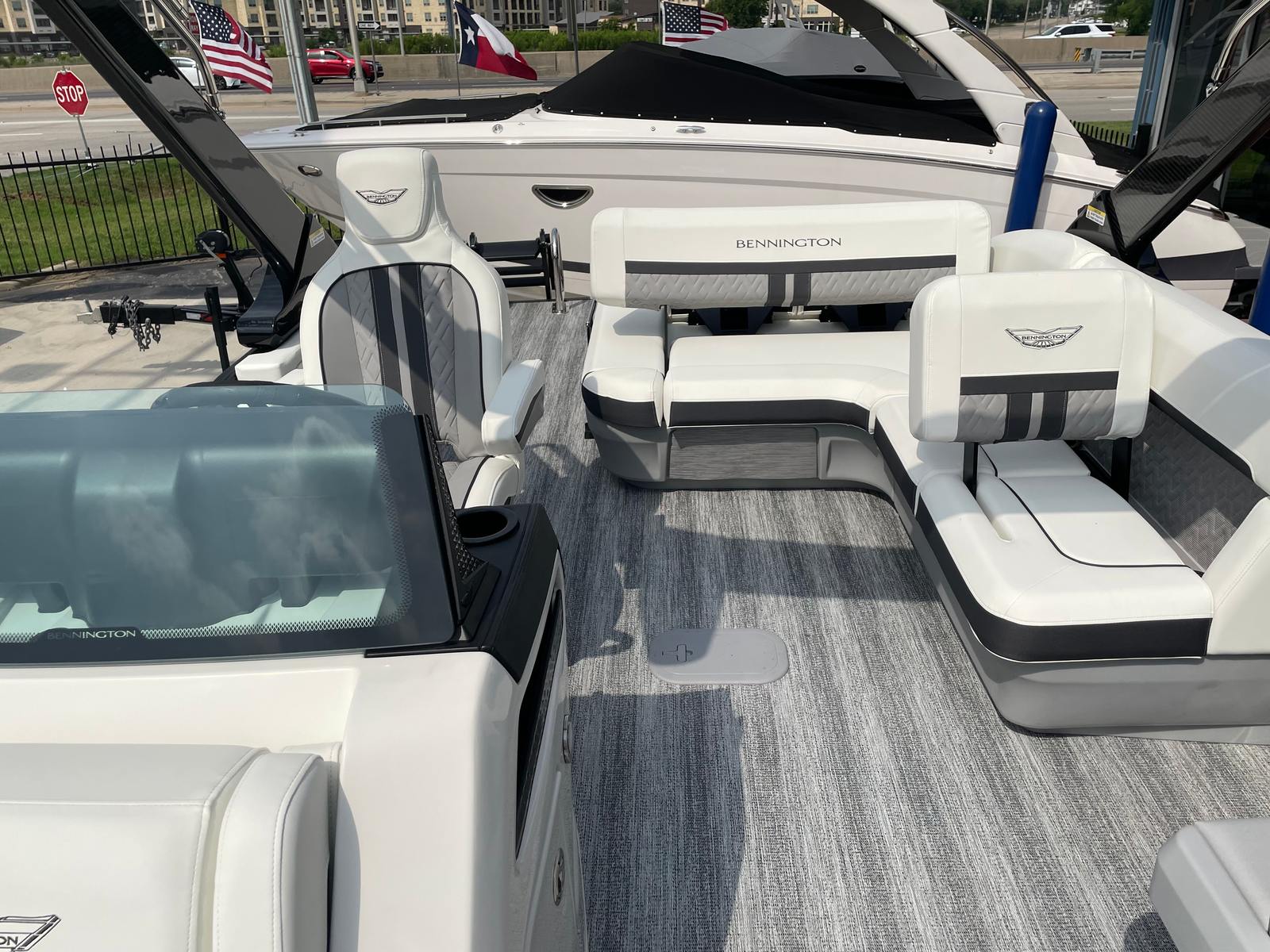 This Bennington pontoon boat is the ultimate platform for a wide range of activities and adventures. Imagine hosting lively family gatherings, complete with music, laughter, and plenty of space for everyone to relax. The comfortable seating and spacious deck make it easy to entertain guests, enjoy meals, or simply unwind in style.For those who love water sports, the powerful 300-horsepower engine provides the speed and agility needed for tubing, wakeboarding, or skiing. The stable platform and generous seating also make it an excellent choice for fishing trips, allowing you to cast lines and reel in the catch of the day with ease. If luxury getaways are more your style, the elegant finishes and ambient lighting create the perfect setting for romantic sunset cruises or peaceful escapes on the water.