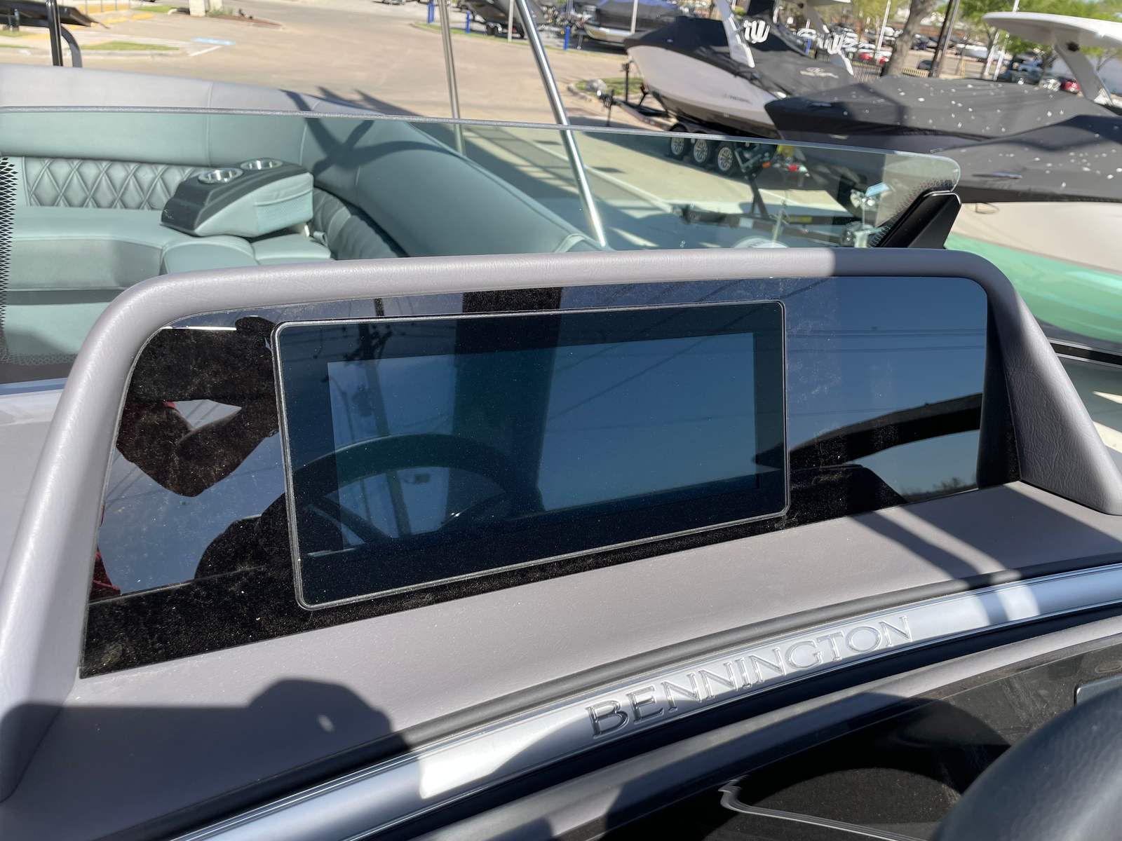 The 2025 Bennington 27 QSBAX2 ESP is loaded with premium features designed to enhance every aspect of your boating experience. The illuminated cupholders add a touch of elegance and ensure your favorite beverages are always within reach, even after sunset. Exterior side lighting and underwater lighting create a captivating ambiance, making evening outings truly magical. The toekick lights, available in multiple sizes (2-41", 1-62", 2-72"), provide both safety and style, illuminating walkways and adding to the boat’s modern aesthetic.The interior of this Bennington pontoon is a masterpiece of comfort and design. The console graphite and graphite Simtex materials offer a sleek, contemporary look, while the interior accent in perforated metallic carbon adds a sophisticated touch. The entertainment system is second to none, featuring eight Rockford Fosgate 6.5" M2 speakers, a powerful 10" M2 subwoofer, and a PM Punch amplifier upgrade. Whether you are hosting a party or enjoying a quiet evening on the water, the audio experience is immersive and crystal clear.