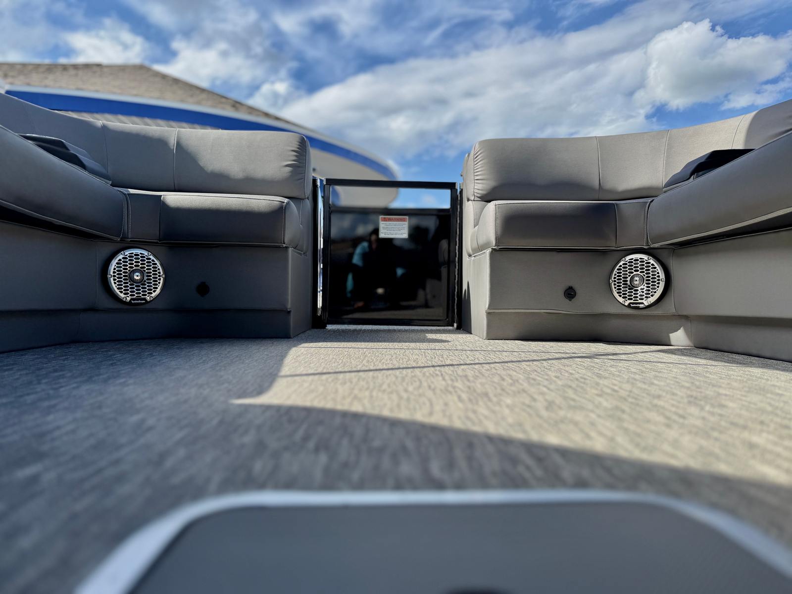 Owning the Bennington 27 QXFBWAX2 ESP pontoon boat means embracing a lifestyle of fun, relaxation, and social connection. The spacious deck layout provides ample room for guests to lounge, mingle, and soak up the sun. The advanced lighting systems create a festive atmosphere for evening cruises, while the premium audio setup ensures your favorite playlists sound incredible, whether you’re anchored in a quiet cove or hosting a lively party on the water.Comfort is paramount, with plush seating and thoughtful design elements that make every moment onboard enjoyable. The illuminated cupholders and accent lighting add a touch of luxury, while the high-performance engines guarantee thrilling rides and smooth cruising. This Bennington boat for sale is perfect for those who want to combine excitement with relaxation, offering the best of both worlds.