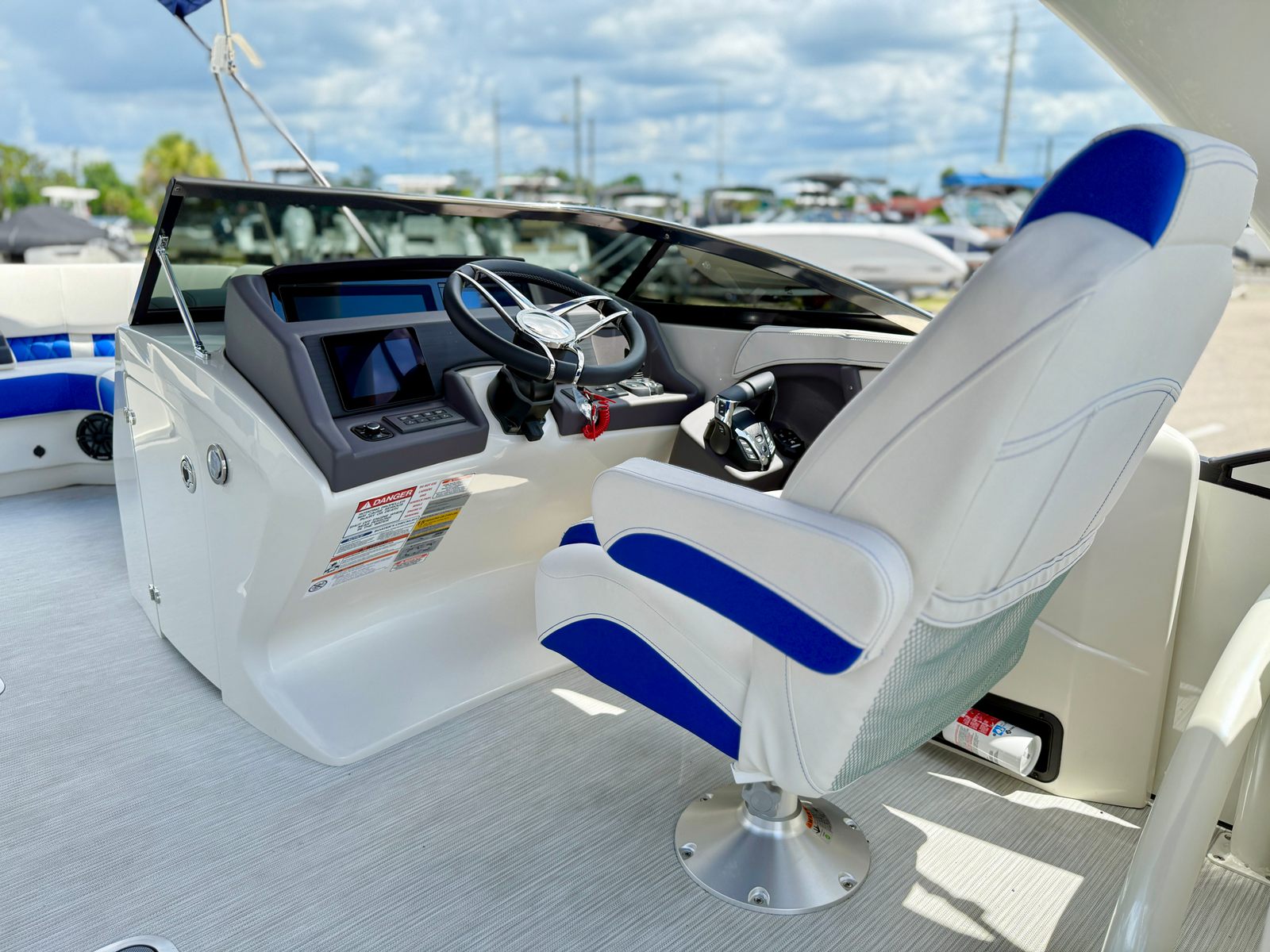 Beyond its luxurious features, the Bennington 27 QXFBWAX2 ESP is designed with practicality in mind. The integrated steering system simplifies docking and maneuvering, even in crowded marinas or tight spaces. The spacious layout offers versatile storage options for gear, water toys, and personal items, keeping the deck clutter-free and organized.Fuel efficiency is enhanced by the advanced Yamaha engines, allowing you to spend more time on the water and less time at the fuel dock. The durable construction and high-quality materials ensure long-lasting performance and easy maintenance, so you can focus on enjoying your time with family and friends.