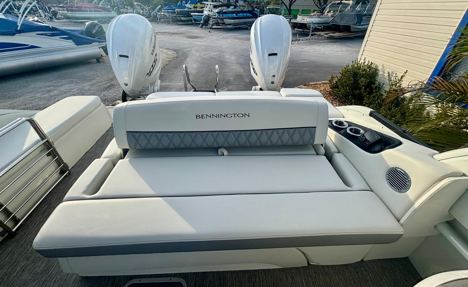 In addition to its impressive style and entertainment features, the Bennington 30 QXSBWAX2 ESP offers practical benefits that make ownership a pleasure. The advanced Yamaha Twin Integrated Steering system simplifies docking and maneuvering, reducing stress and increasing confidence for captains of all experience levels. The spacious layout provides ample room for gear, water toys, and personal belongings, ensuring that everything you need for a day on the water is always within reach.The efficient design of this pontoon boat also contributes to a smooth and enjoyable ride, minimizing noise and vibration for a more relaxing experience. Whether you are planning a day of fishing, a family picnic, or a sunset cruise, the Bennington 30 QXSBWAX2 ESP adapts effortlessly to your needs, making it one of the most versatile pontoon boats for sale today.