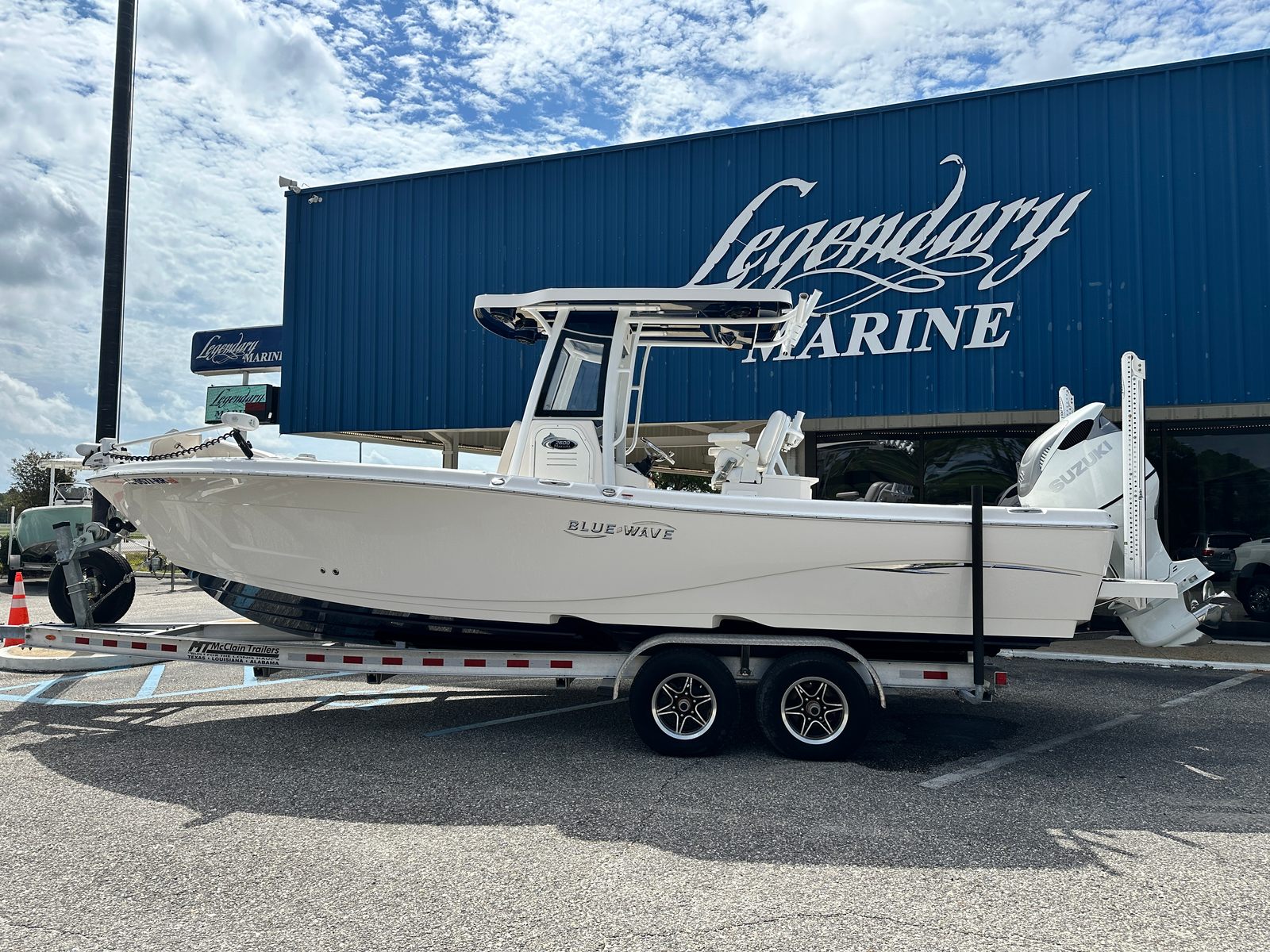 The 2023 Blue Wave 2600 Makaira is a used Center Console boat that measures just over 26 feet in length, making it an ideal choice for those who desire ample space without sacrificing maneuverability. Its contemporary design and thoughtful layout provide a spacious deck that accommodates family, friends, and gear with ease. Whether you are a seasoned angler or a boating enthusiast looking for a reliable vessel, this Blue Wave boat for sale offers the perfect balance of size and functionality.