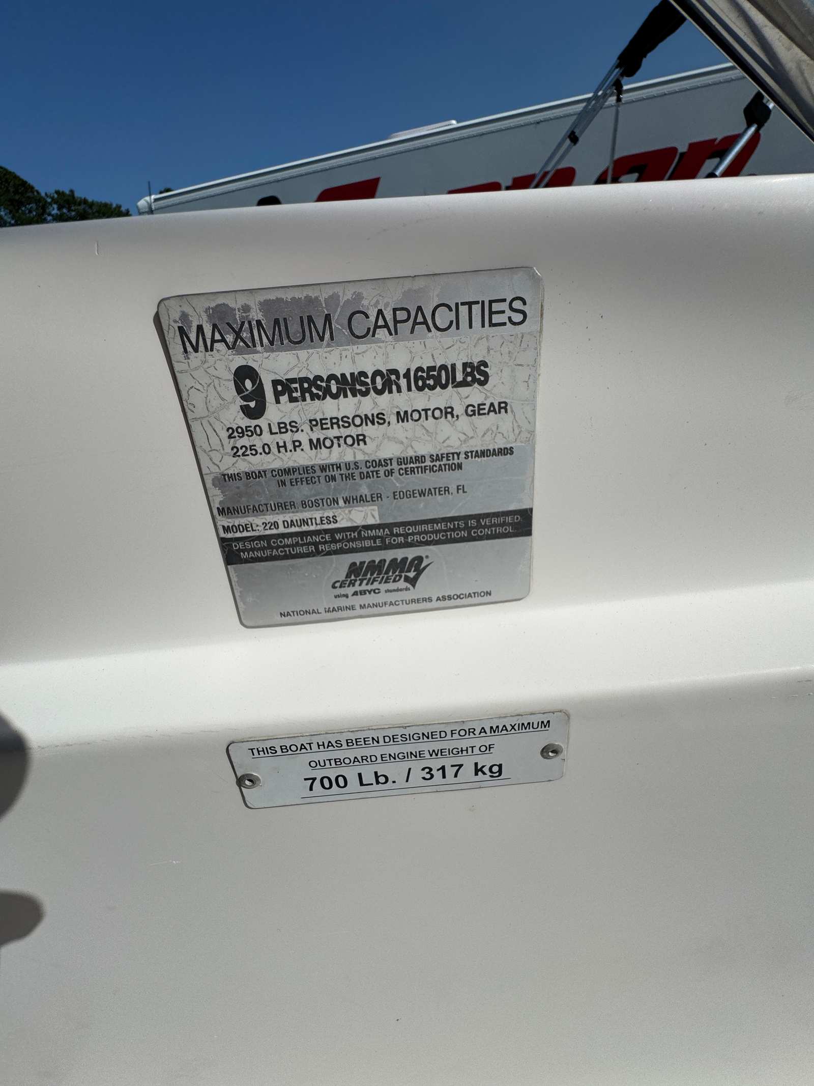 Powering this Center Console boat is a single engine with an impressive 225 horsepower, providing plenty of muscle for swift acceleration and smooth cruising. With 764 engine hours, the motor has proven its reliability and is ready for many more seasons of enjoyment. The 220 Dauntless is engineered for responsive handling, making it easy to navigate through choppy waters or glide across calm lakes. Whether you’re heading out for a day of fishing or towing water toys for family fun, the performance of this Boston Whaler boat for sale ensures you’ll have the power and agility you need.