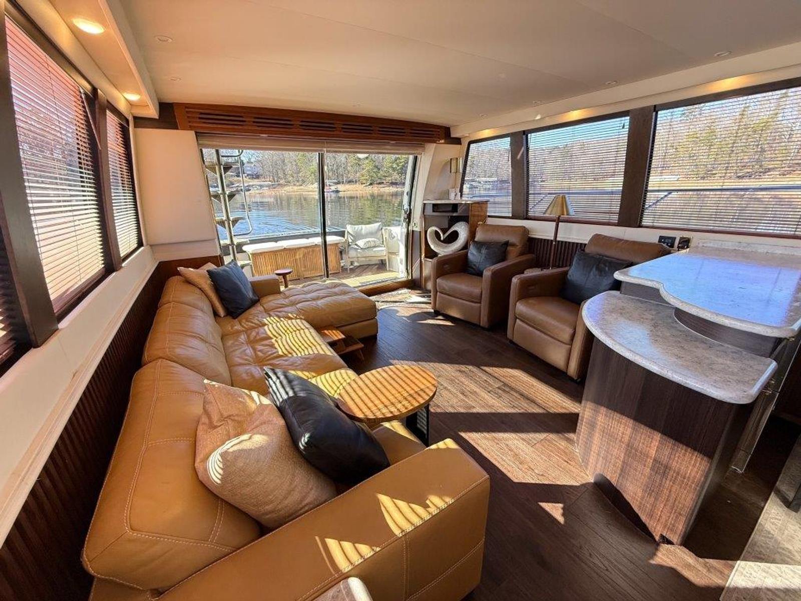 Below deck, the yacht features a three-stateroom layout, generous pilothouse seating, and a full-beam master suite, making her ideal for extended cruising or luxury liveaboard use. Her previous owner brought her down from Tennessee, and she currently resides under cover on Lake Lanier, preserving her freshwater condition.