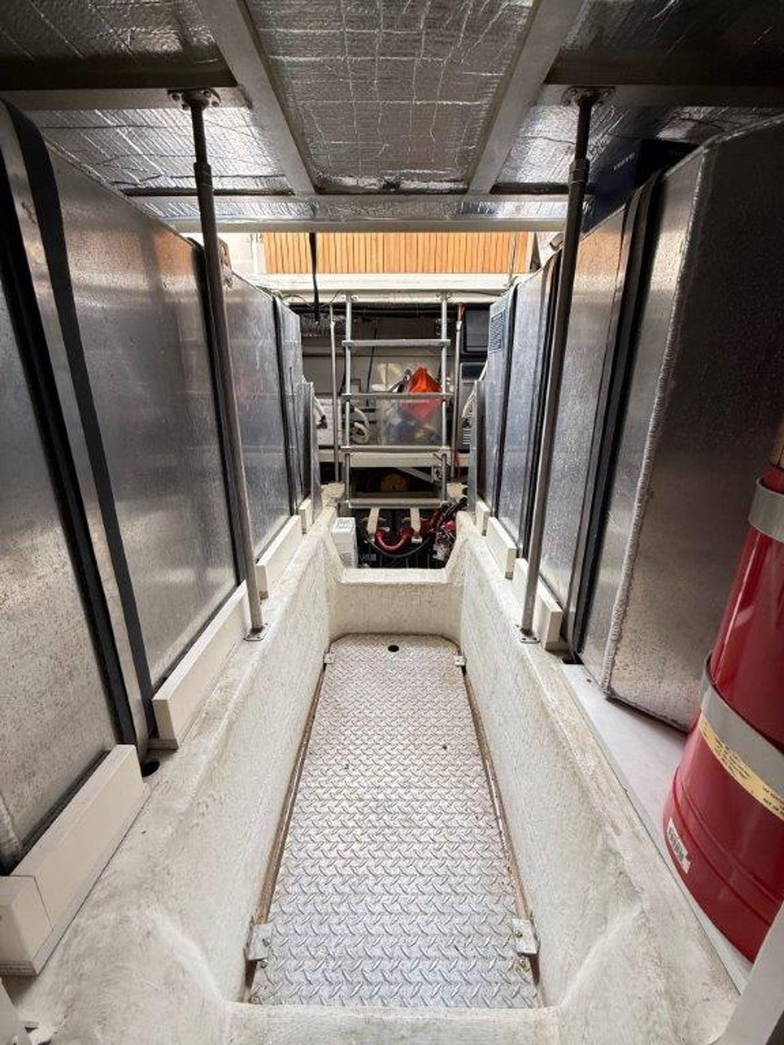 Powered by twin Volvo TAMD74P-D diesel engines (480 HP each) with just over 600 hours, “Ricky Bobby” has been fully serviced by a local mechanic, with service records available. The Onan 12.5kW generator shows 740 hours and runs smoothly. The engine room is exceptionally clean and offers easy access to all systems.