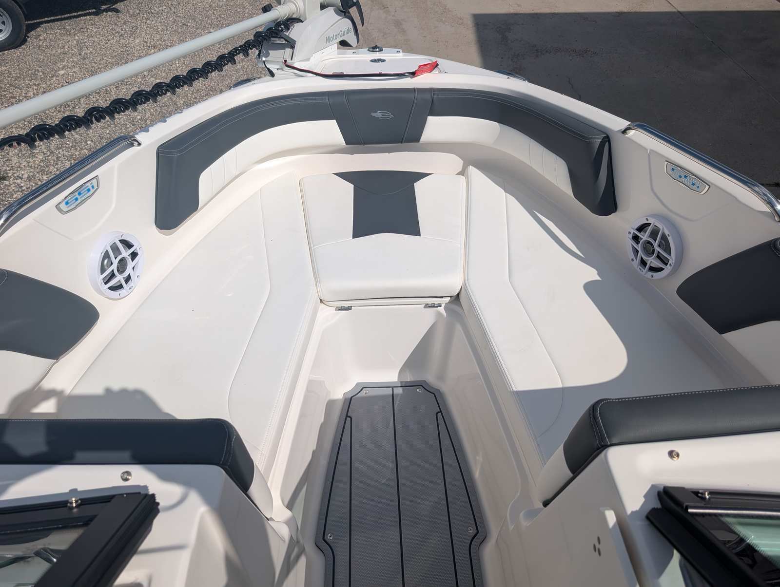 The 2025 Chaparral 21 SSI S&F is a 21-foot Bowrider that embodies the spirit of fun and adventure. With its sleek lines, modern design, and attention to detail, this Chaparral boat for sale is sure to turn heads at the marina and on the open water. The new condition ensures you’re getting the latest in boating technology and style, while the spacious layout provides ample room for family and friends to relax and enjoy the ride. The hull bottom is finished in classic white, giving the boat a timeless look that complements its contemporary features.