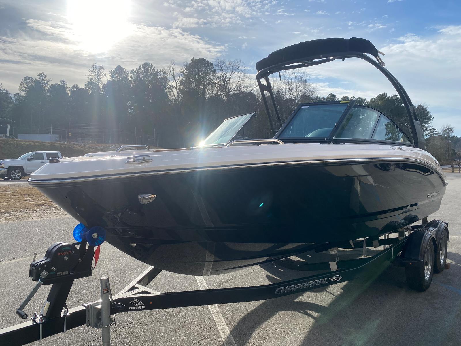 The 2026 Chaparral 21 SSI Bowrider is a brand-new vessel, meticulously crafted to deliver an unforgettable boating experience. Measuring 21 feet in length, this boat offers ample space for passengers to stretch out and enjoy the ride. Its sleek profile, highlighted by a gel-coated entire hull in striking black and a solid hull bottom color, ensures you’ll turn heads at every marina and on every lake. The Cayenne White Storm cockpit interior adds a touch of sophistication, while the black standard canvas and MTX folding arch tower provide both style and functionality. Whether you’re cruising, entertaining, or simply soaking up the sun, this Chaparral boat for sale is built to impress.