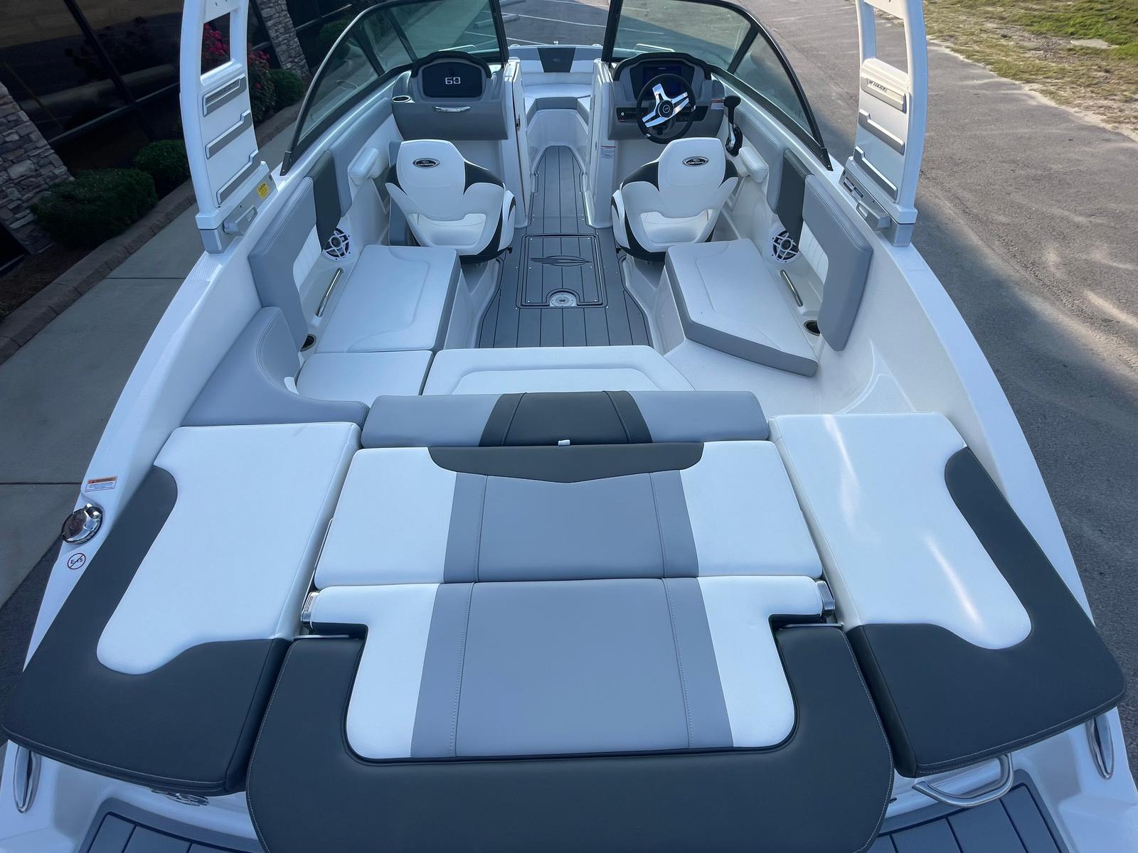The 2025 Chaparral 23 SSI bowrider shines in a variety of scenarios, making it a versatile choice for any boating lifestyle. Imagine spending sunny afternoons with family and friends, cruising along the shoreline, or anchoring in a quiet cove for a swim. The spacious layout and comfortable seating make it perfect for social gatherings, picnics on the water, or simply relaxing with your favorite music.For adventure seekers, the powerful engine and folding arch tower provide the perfect setup for watersports, from wakeboarding to tubing. Anglers will appreciate the integrated Simrad GO9 Touch Chartplotter/Fishfinder, which makes locating the perfect fishing spot easier than ever. Whether you are planning a weekend getaway, a day of fishing, or an action-packed afternoon of watersports, the Chaparral 23 SSI adapts to your needs and exceeds expectations.