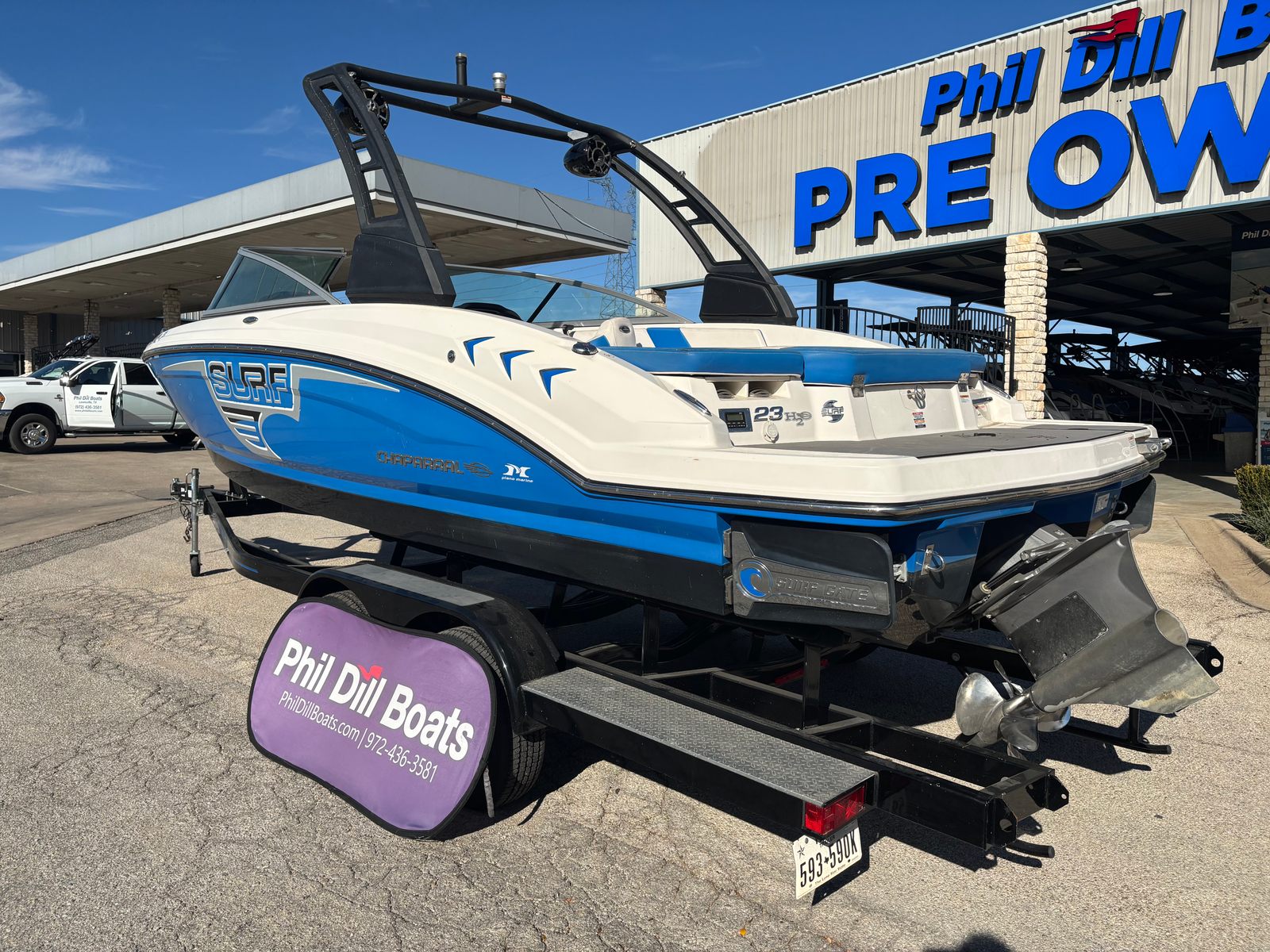 The 2019 Chaparral 23 Surf is a 23-foot Bowrider that exudes sophistication and sporty flair. Its sleek profile and contemporary lines make a bold statement at the marina, while its spacious layout ensures every passenger enjoys the ride. With a length of 23 feet, this boat offers ample room for family and friends, making it perfect for social gatherings, water sports, and relaxing cruises. The Chaparral 23 Surf is designed to maximize fun and comfort, providing the ideal platform for memorable days on the water.