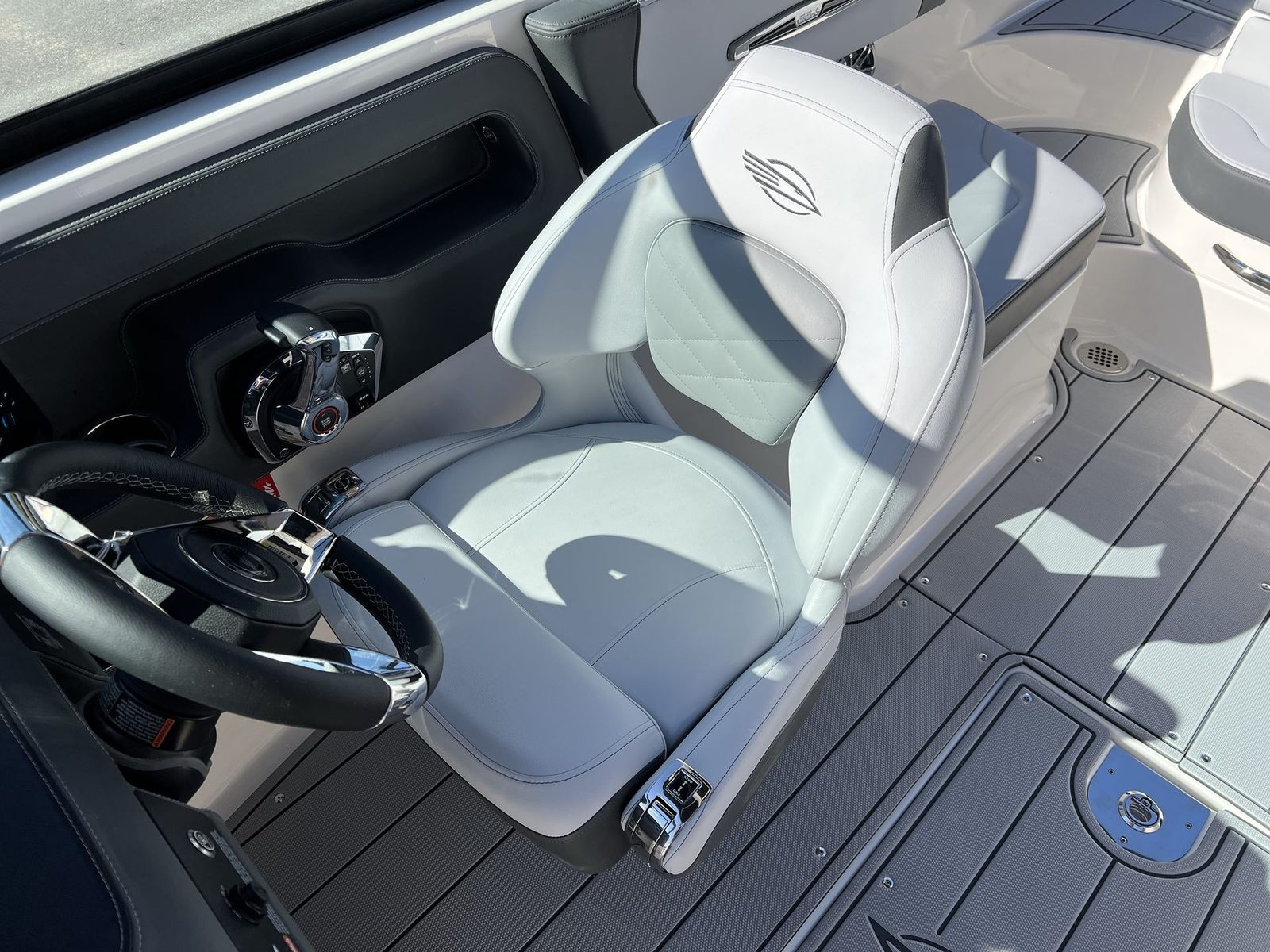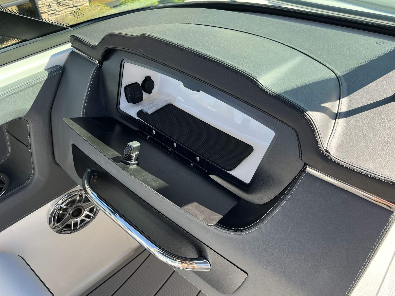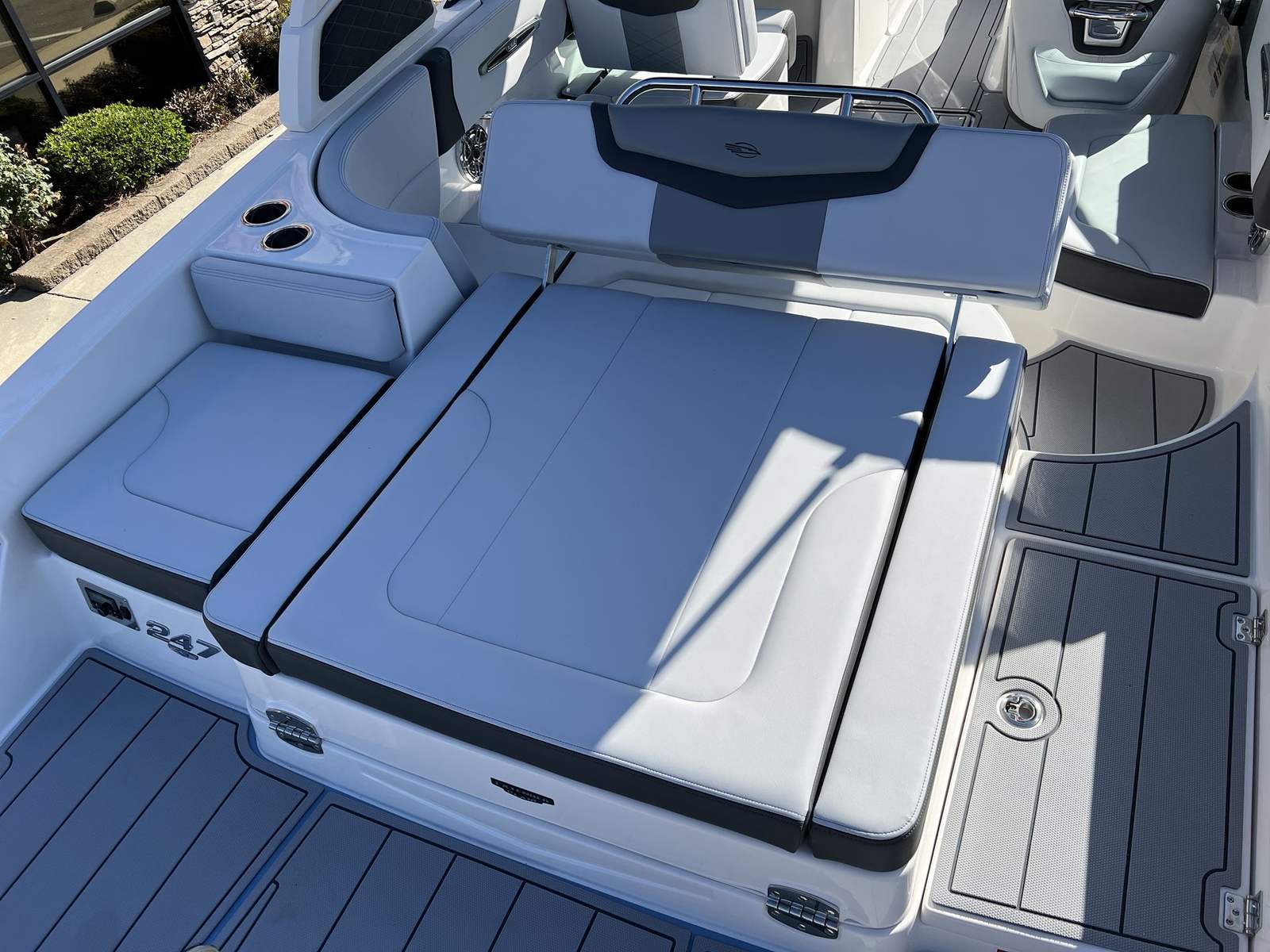 The Chaparral 247 SSX is designed with practicality in mind, making ownership as enjoyable as the time spent on the water. The intuitive layout and thoughtful storage solutions ensure you have plenty of space for gear, water toys, and personal items. The transom tilt switch and fender holders simplify docking and mooring, reducing stress and allowing you to focus on having fun.Fuel efficiency is enhanced by the advanced Mercury engine and BRAVO 3 drive, helping you maximize your time on the water without frequent stops at the fuel dock. The mooring cover protects your investment from the elements, while the air pump adds convenience for inflating towables and other accessories. Every detail of the 247 SSX is crafted to make your boating experience as seamless and enjoyable as possible.