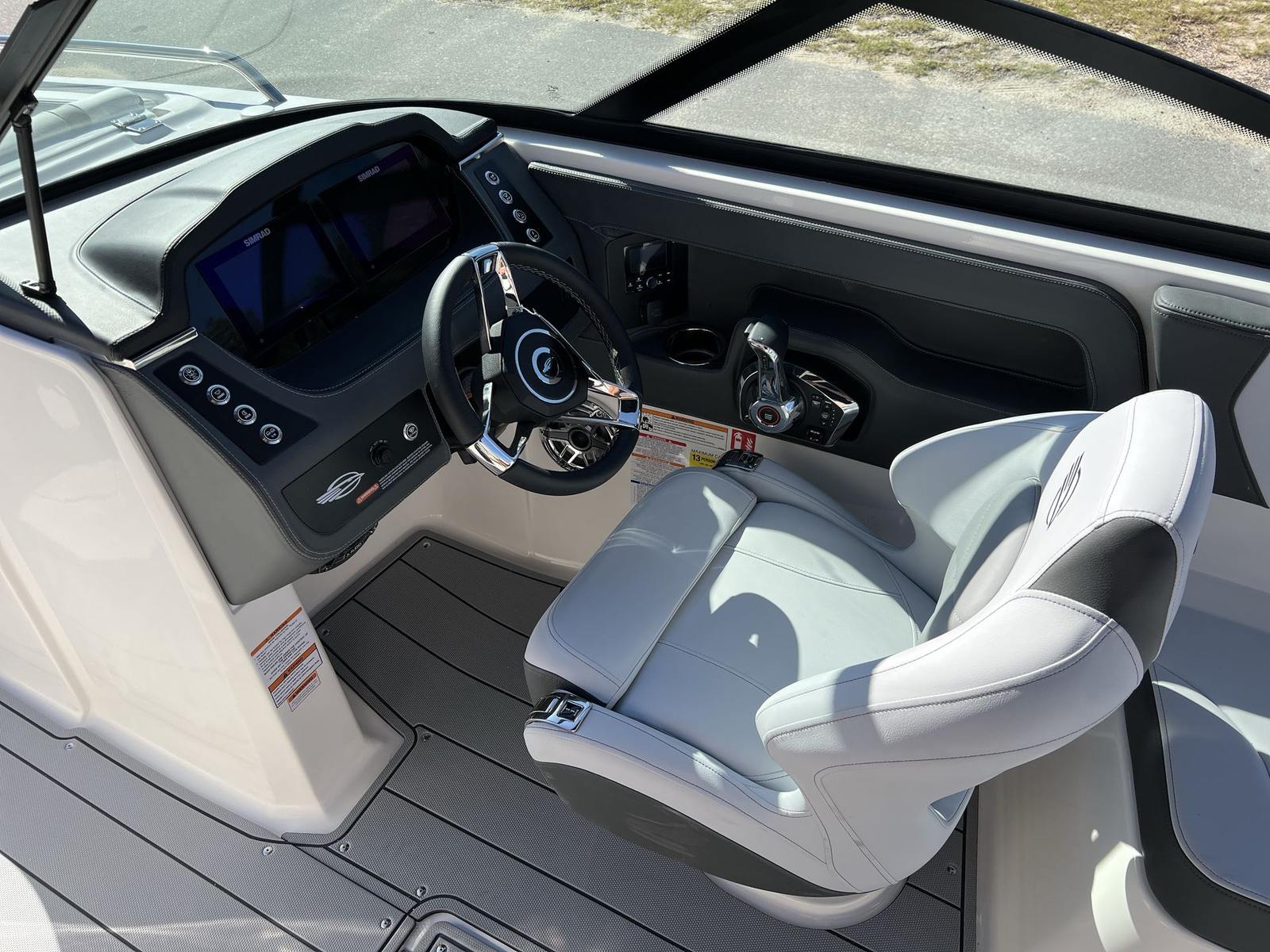 At the heart of the Chaparral 247 SSX is a powerful Mercury 6.2L DTS 2.20 BRAVO 3 engine, delivering an impressive 300 horsepower. This single-engine setup ensures exhilarating acceleration, smooth cruising, and responsive handling, making it ideal for water sports, leisurely cruises, or quick trips across the bay. The advanced BRAVO 3 drive system enhances maneuverability and efficiency, allowing you to navigate tight spaces and dock with confidence. Whether you are carving through waves or gliding across calm waters, the 247 SSX offers a dynamic and enjoyable boating experience.