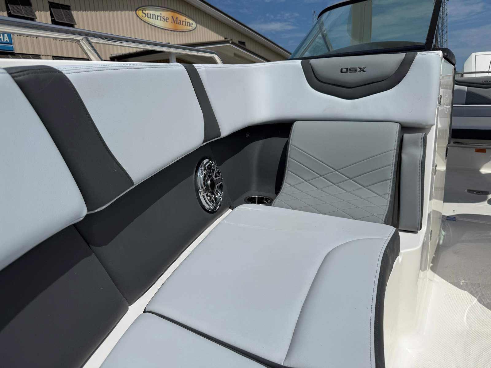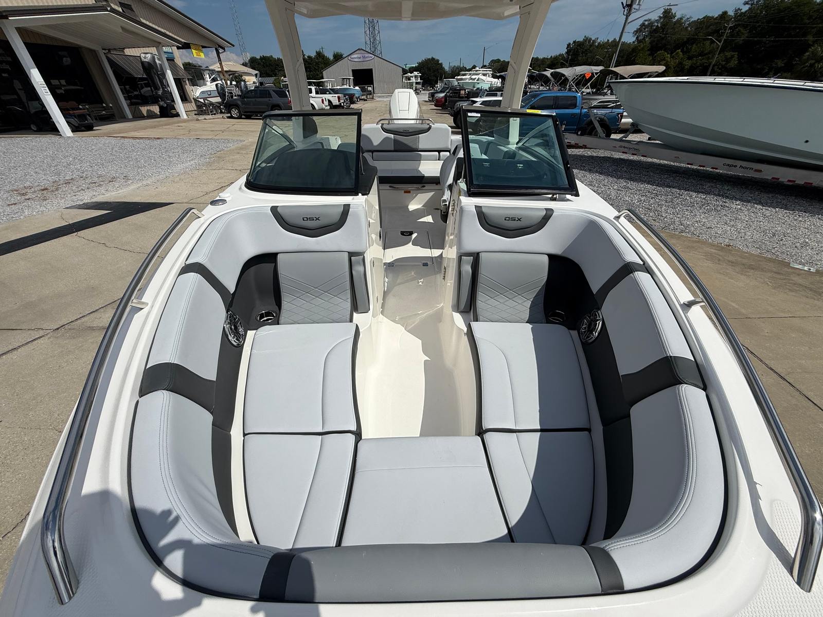 The 2026 Chaparral 270 OSX is a remarkable 27-foot bowrider that seamlessly blends innovative design with practical functionality. As a new addition to Chaparral’s renowned lineup, this model boasts a striking Atlas Blue hull side and bottom gelcoat, complemented by a painted metallic hull stripe in Alloy Gray. The sophisticated color palette is further enhanced by a Lunar cockpit interior and a sleek black canvas (if equipped), ensuring that this Chaparral boat for sale turns heads at every marina and on every lake.With only 1 engine hour, this bowrider is in pristine, new condition, ready to deliver countless seasons of fun and relaxation. The 270 OSX is engineered to provide ample space for family and friends, making it the ideal vessel for social gatherings, water sports, or tranquil cruises.