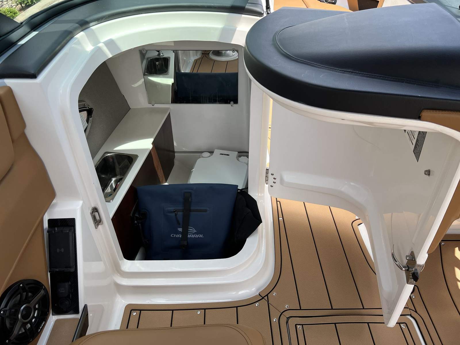 Beyond its impressive performance and luxurious features, the Chaparral 8 SSX is engineered for practical, everyday use. The thoughtful design makes docking and maneuvering straightforward, even for less experienced boaters. The boat’s efficient engine ensures you can spend more time on the water and less time refueling, while the protective covers help maintain the boat’s pristine condition year after year.Storage solutions throughout the boat provide ample space for gear, water toys, and personal belongings, keeping the deck clutter-free and organized. The robust construction and quality materials ensure durability and low maintenance, so you can focus on enjoying your time on the water without worry.