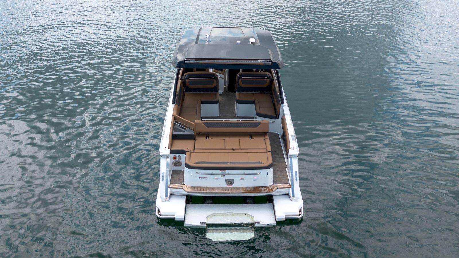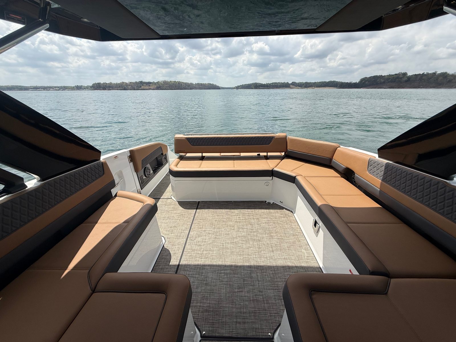 The layout is designed for versatility, with generous seating from bow to stern and plenty of room to move around without feeling crowded. The helm is clean and intuitive, while the cockpit and bow areas are set up for easy conversation, lounging, or dining. Storage is well thought out, keeping gear tucked away without sacrificing space.