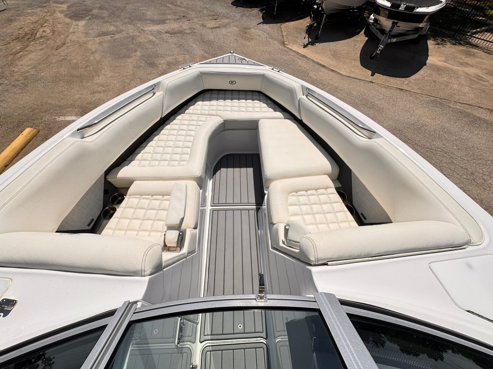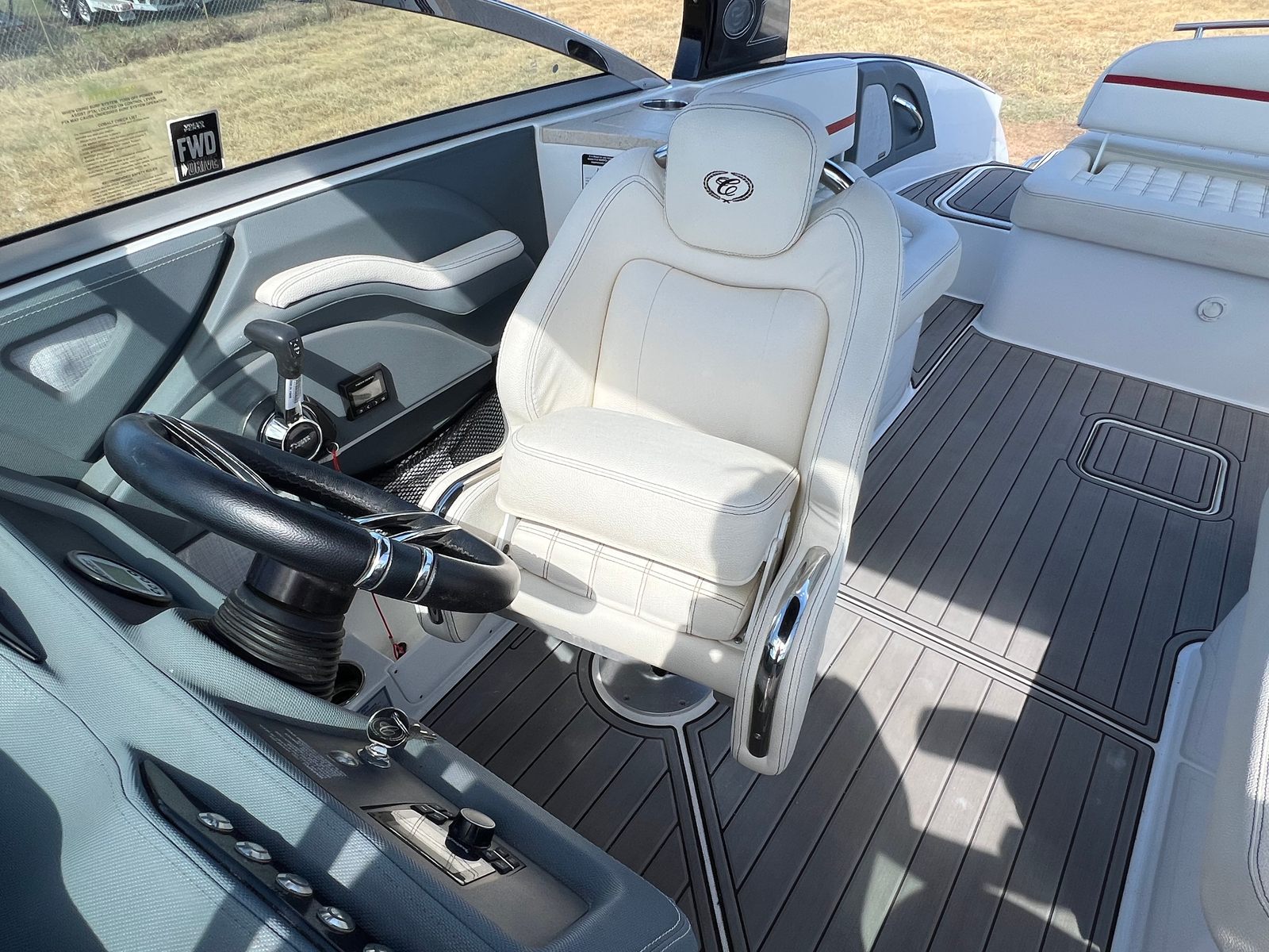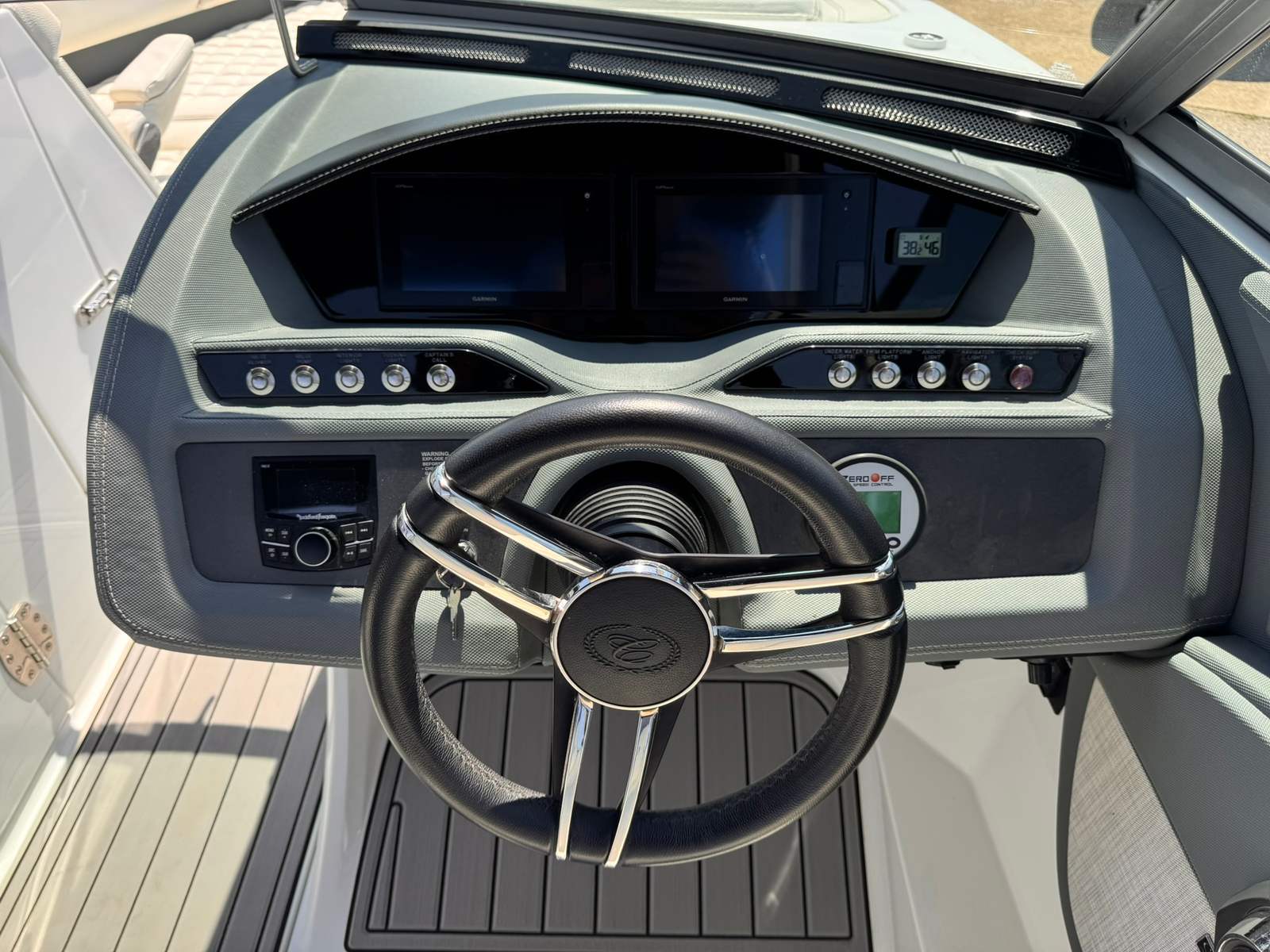 Benefits: Owning a Cobalt R7 Surf means embracing a lifestyle of fun, relaxation, and adventure. The Bowrider configuration is ideal for socializing, with plenty of room for friends and family to stretch out and enjoy the sunshine. The powerful 380-horsepower engine provides the excitement of high-speed runs, while the spacious deck invites you to slow down and soak in the scenery. Whether you are hosting a sunset cruise, anchoring at your favorite cove, or pulling a wakeboarder behind the boat, the R7 Surf delivers endless opportunities for enjoyment. Comfort is at the heart of the R7 Surf’s design. The plush seating, ergonomic layout, and smooth ride ensure that every outing is enjoyable, no matter how long you stay on the water. The boat’s premium construction and attention to detail reflect Cobalt’s commitment to quality, giving you peace of mind and pride of ownership.