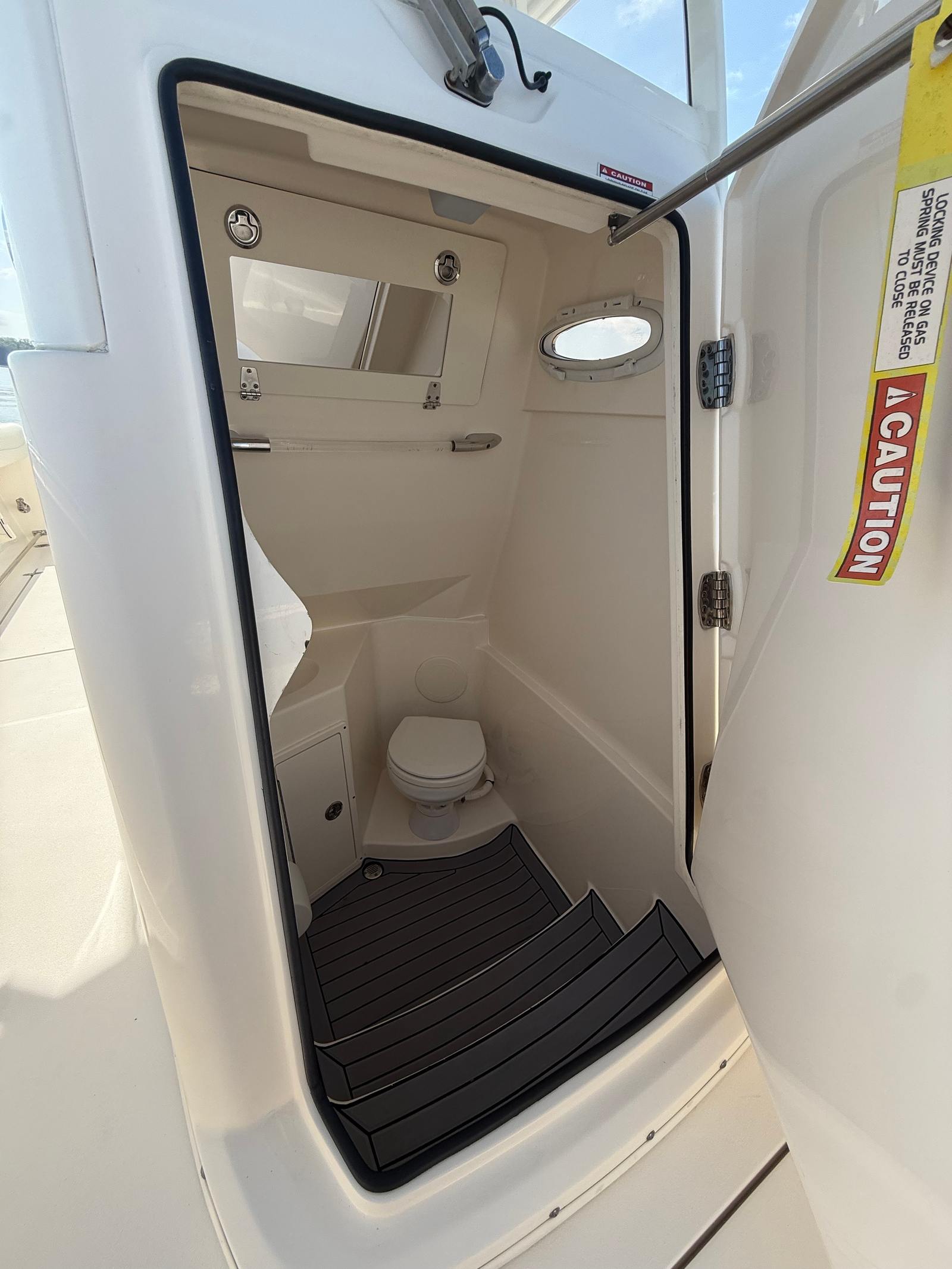 Beyond the highlights above, this boat is fully equipped for both fishing and comfort. You’ll find a VHF radio onboard for communication, along with fresh and raw water washdowns for easy cleanup after a day offshore. Anglers will appreciate the dual macerated fish boxes, a well-designed lean post tackle station, and a livewell that’s ready for your next trip.