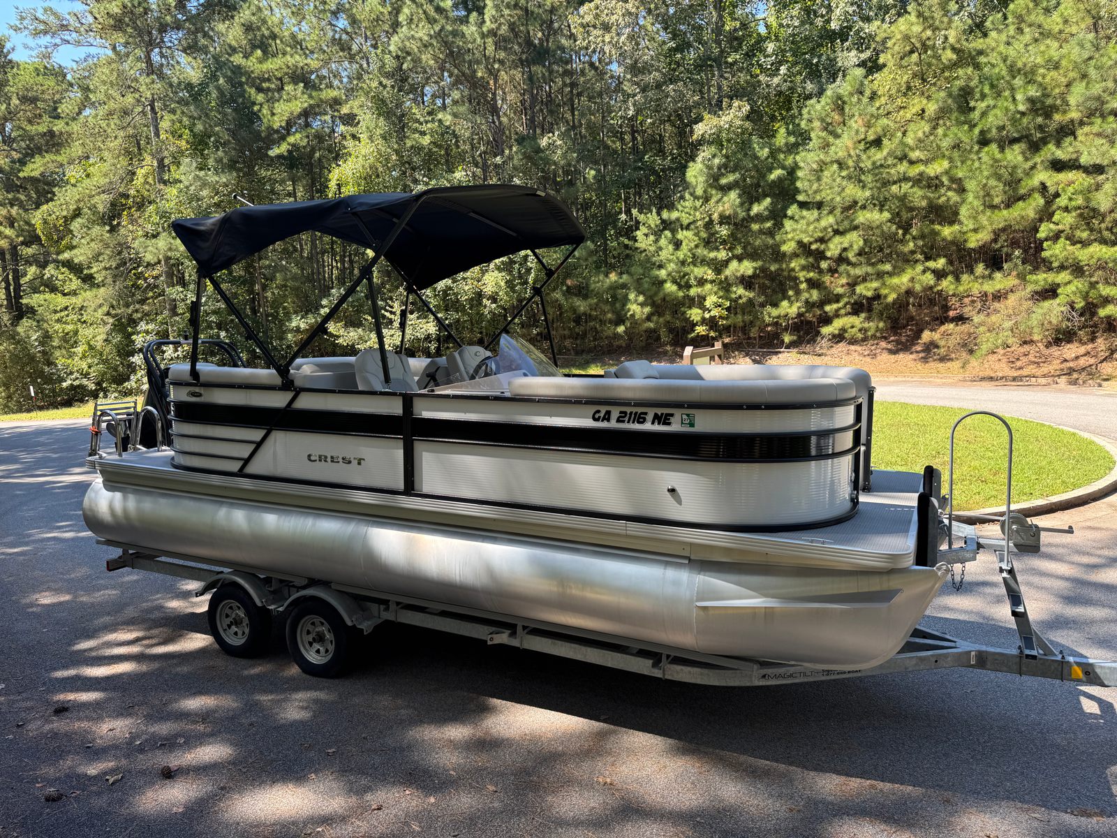 The 2022 Crest 220 DLX is a spacious and versatile pontoon boat, measuring just over 23 feet in length. Its generous size provides ample room for passengers to stretch out and enjoy the ride, making it an excellent choice for social gatherings, leisurely cruises, or adventurous days on the lake. As a used pontoon boat, this model has been well-maintained and is ready to offer years of reliable service to its next owner. The Crest 220 DLX’s sleek design and modern lines ensure you’ll turn heads wherever you go, while its thoughtful layout maximizes both comfort and functionality.