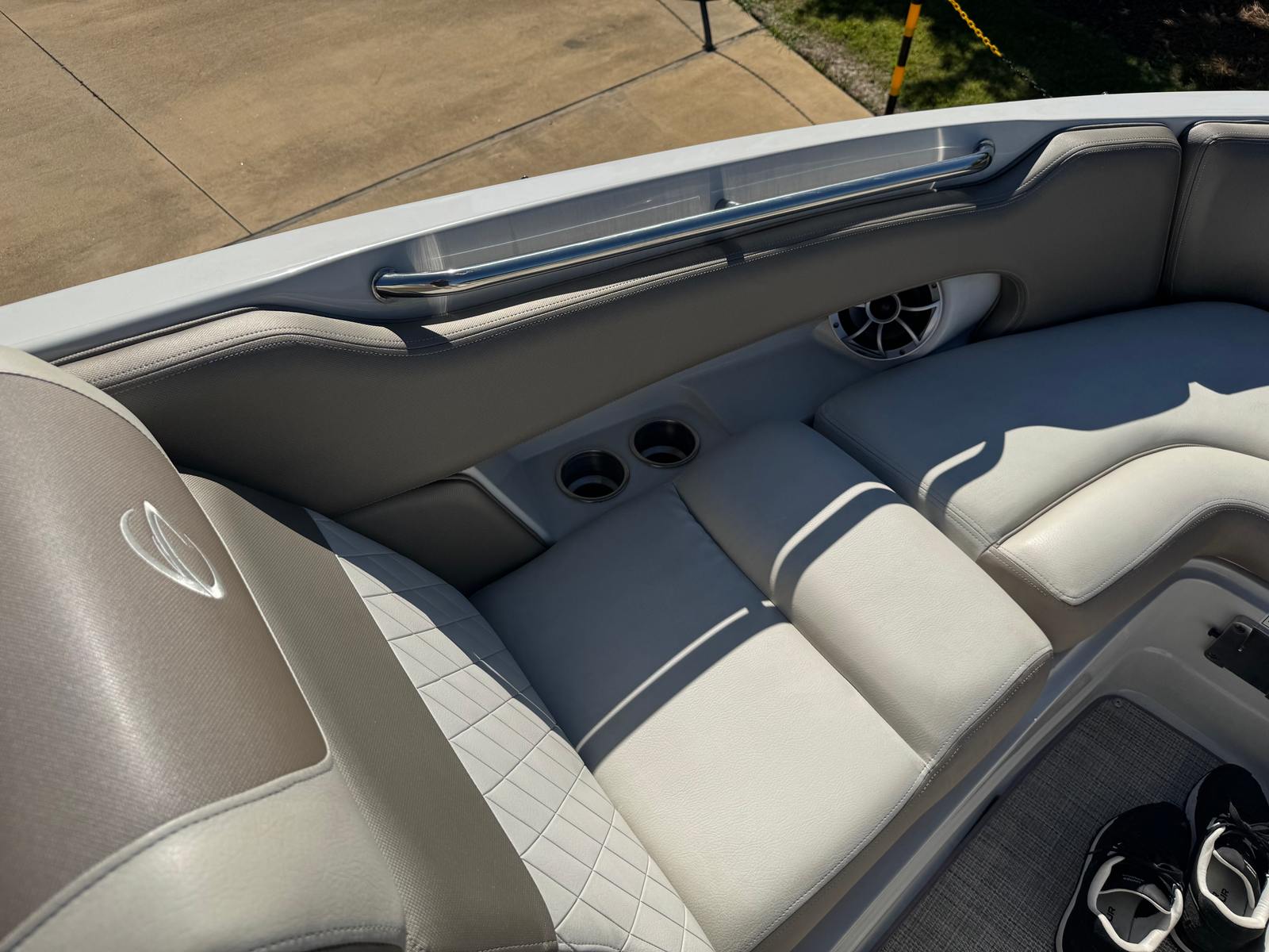 The Crownline 260 XSS is packed with features that enhance both functionality and enjoyment. Its spacious bowrider layout provides ample seating for family and friends, ensuring everyone has a comfortable spot to relax. The open design encourages socializing and makes it easy to move around the boat, whether you are sunbathing, enjoying a picnic, or gearing up for water sports.The 25.25-foot length offers plenty of room for storage, so you can bring along all your gear for a full day of fun. The high-quality construction and attention to detail are evident throughout, from the stylish upholstery to the thoughtfully designed helm. Every inch of the 260 XSS is crafted to maximize comfort and convenience, making it a standout choice among bowrider boats for sale.