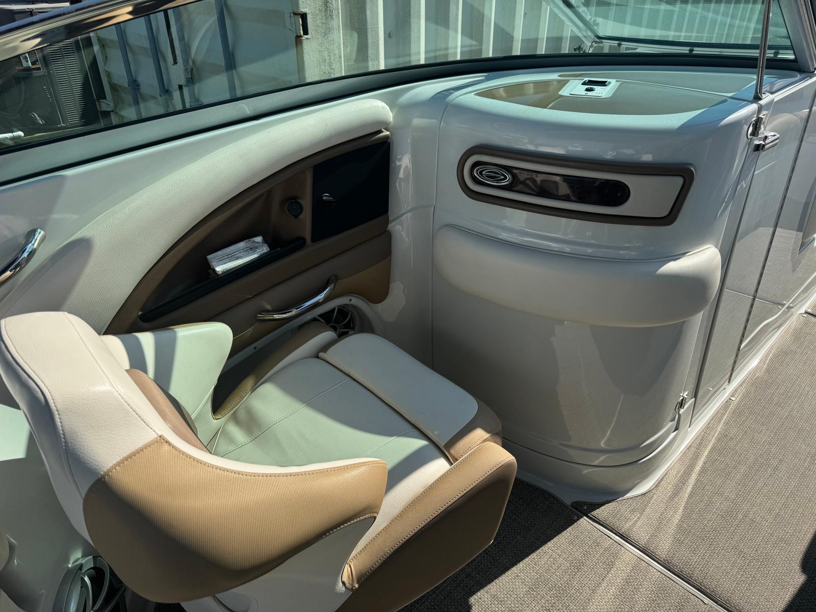 At the heart of the Crownline 285 SS is a powerful single engine delivering an impressive 300 horsepower. This robust engine ensures exhilarating acceleration, smooth cruising, and reliable performance whether you are towing water toys, exploring distant coves, or simply enjoying a leisurely day on the lake. The 300-horsepower output provides the perfect balance of speed and efficiency, making this bowrider boat for sale a joy to operate for both seasoned boaters and newcomers alike. With 320 engine hours, the engine has proven its reliability and is primed for many more adventures on the water.