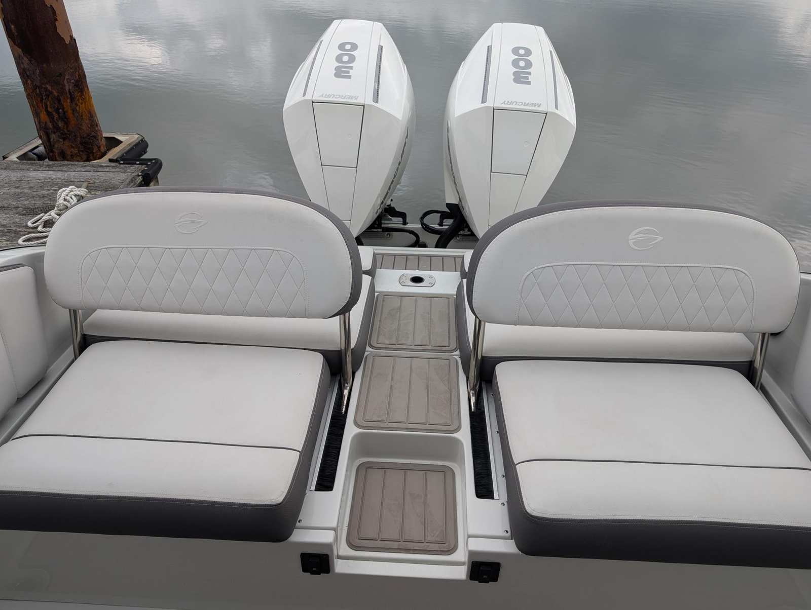 The Crownline E305 XS is packed with features designed to elevate your boating experience. Its spacious Bowrider layout provides comfortable seating for family and friends, while the open bow area is perfect for sunbathing, socializing, or simply enjoying the view. The boat’s modern helm is equipped with intuitive controls, ensuring that both novice and experienced captains can navigate with confidence. The twin-engine configuration not only boosts performance but also enhances safety and reliability, giving you peace of mind during every adventure.With a length of 29.25 feet, the E305 XS offers generous storage options for all your gear, from water sports equipment to picnic supplies. The thoughtful design maximizes usable space, so you can bring everything you need for a day on the water without feeling cramped. The boat’s high-quality construction and attention to detail are evident in every aspect, from the plush upholstery to the durable hull materials.