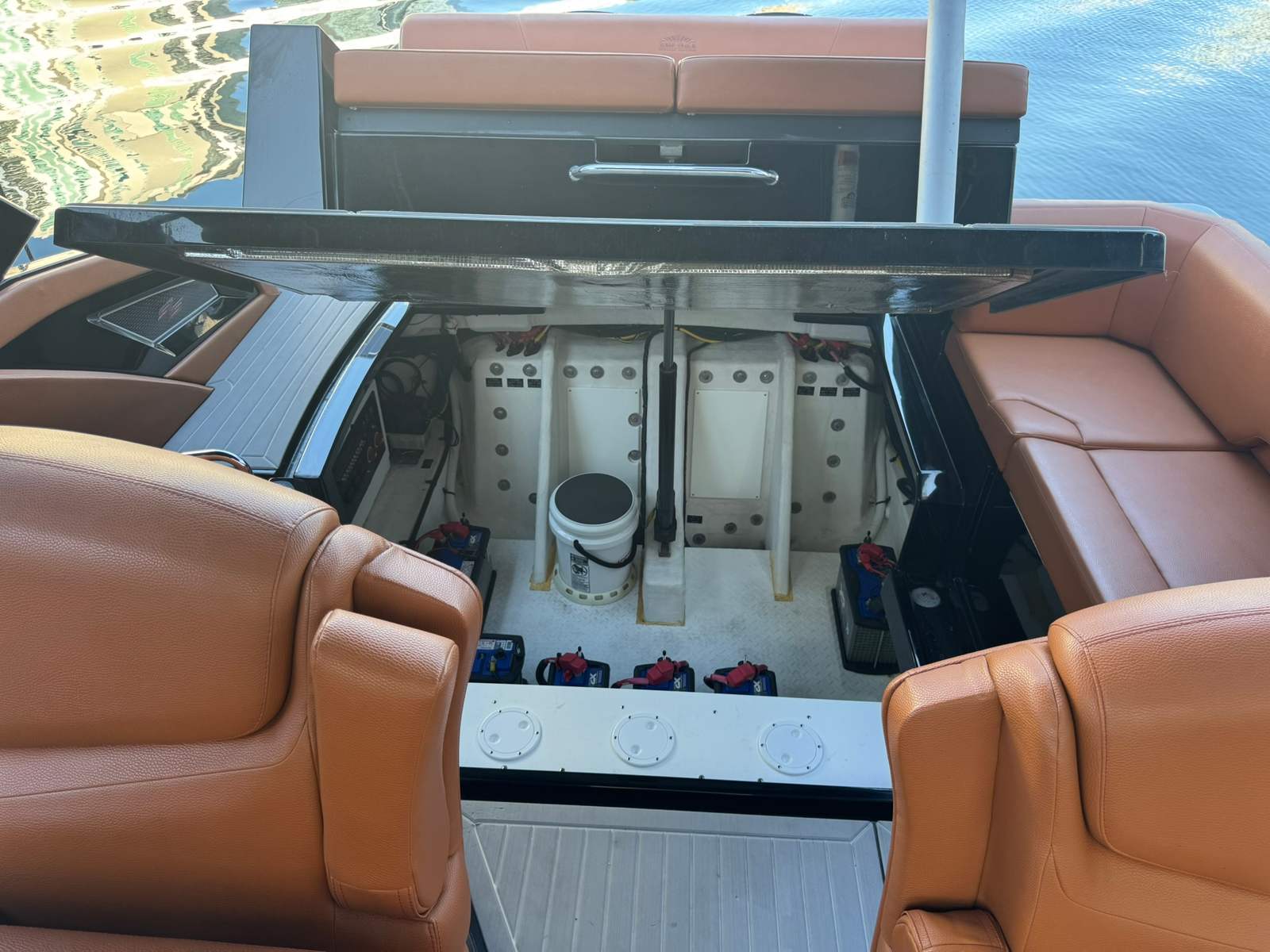 Inside, the boat features full SeaDek flooring and a beautifully finished cabin enhanced with a Lithium power bank that runs the cabin A/C system, making overnights and hot Florida days a breeze—even away from shore power.