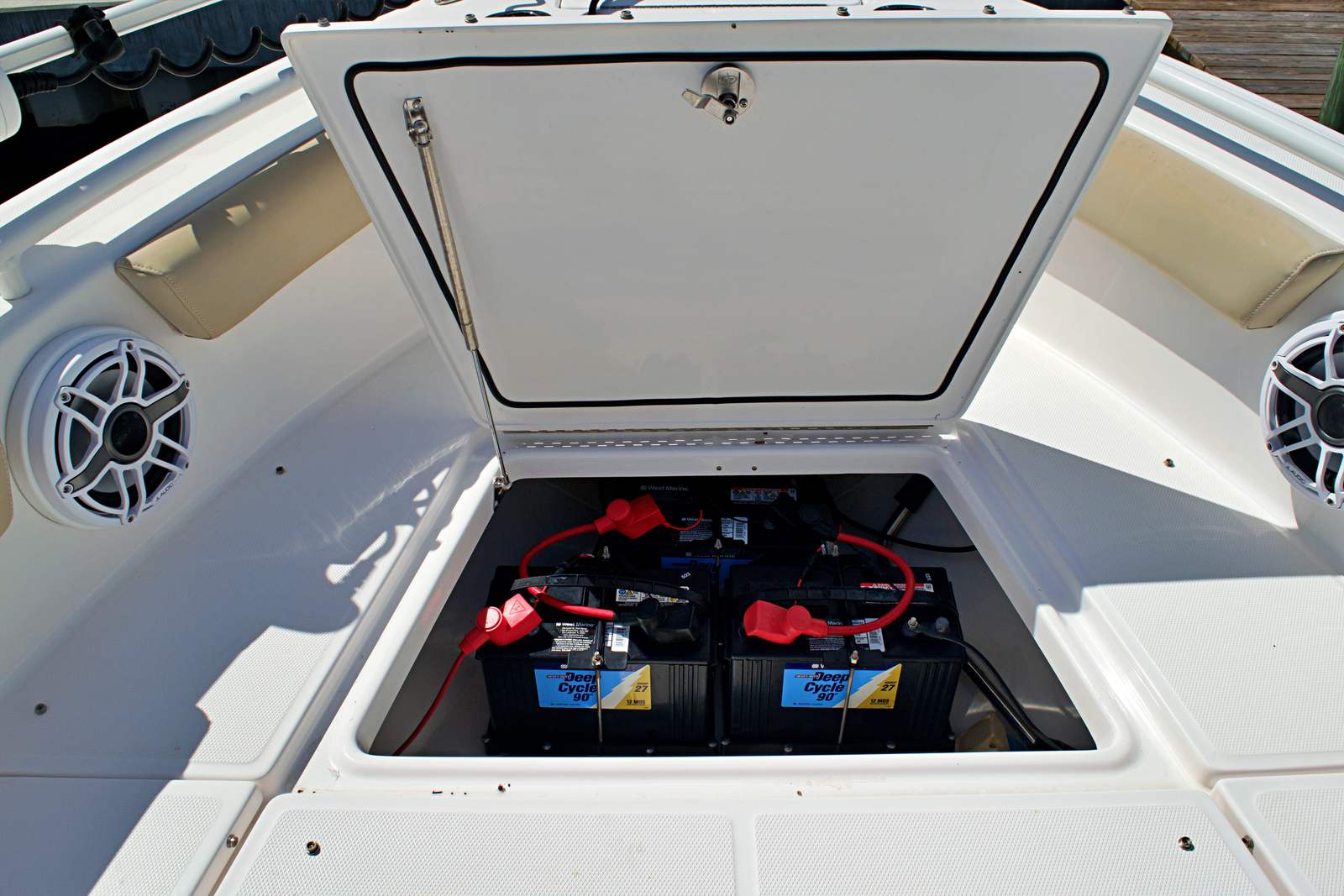 At the heart of this Everglades boat for sale is a powerful single engine delivering 300 horsepower. With 721 engine hours, this vessel has proven its reliability and capability, ready to provide many more seasons of enjoyment. The robust engine ensures quick acceleration, smooth cruising, and efficient fuel consumption, making every trip enjoyable and cost-effective. Whether you’re navigating choppy waters or gliding across calm bays, the Everglades 243 CC offers responsive handling and impressive stability, giving you confidence at the helm.