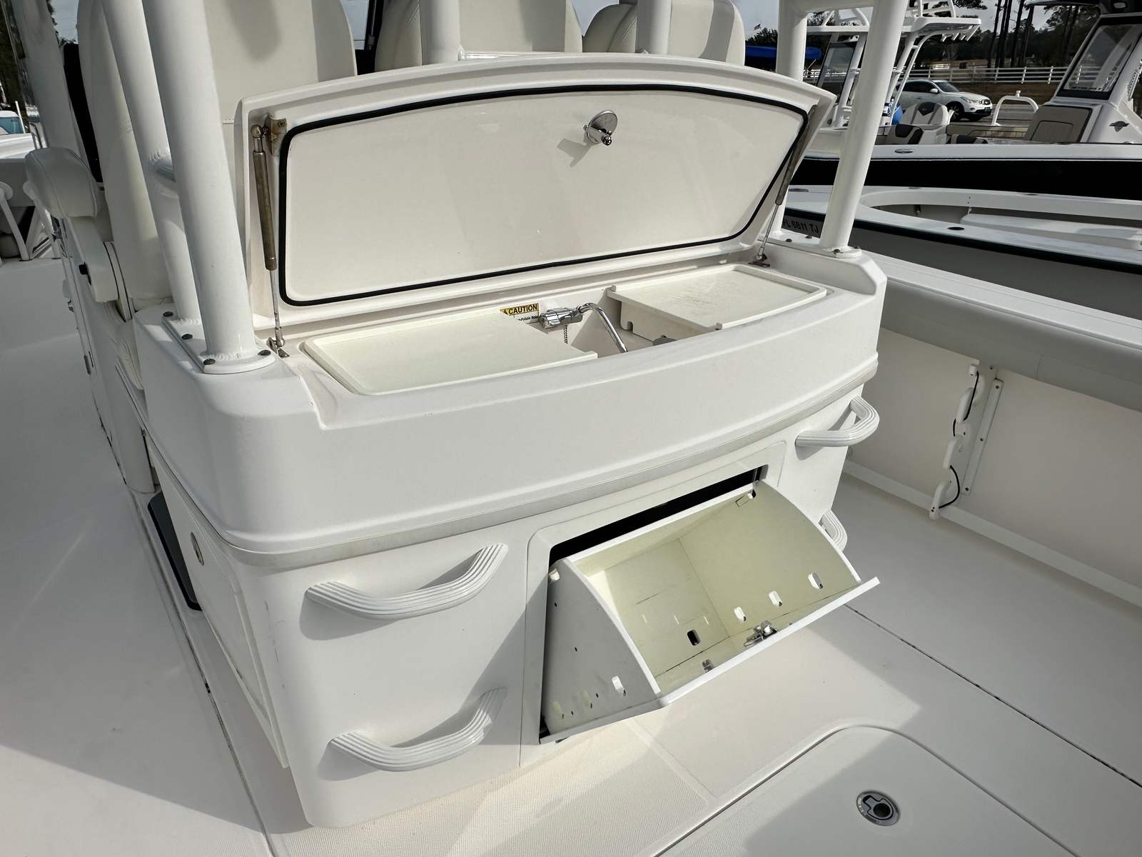 When it comes to performance, the Everglades 335 CC truly excels. Powered by a formidable 850 horsepower engine, this Center Console boat is engineered for exhilarating speed and smooth handling. Whether you are cruising along the coastline, heading offshore for a day of fishing, or simply enjoying a leisurely ride, the 335 CC responds with impressive agility and power. The robust engine ensures you have the thrust needed to tackle a variety of conditions, while the advanced hull design provides stability and confidence at any speed. For those who crave excitement and reliability, this Everglades boat for sale delivers a performance that is second to none.