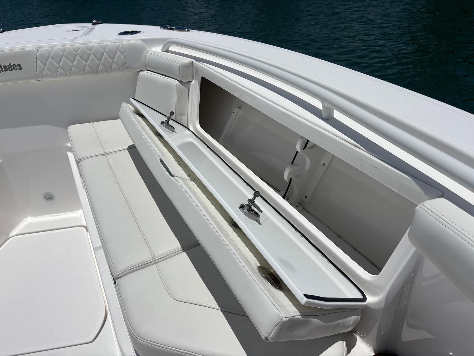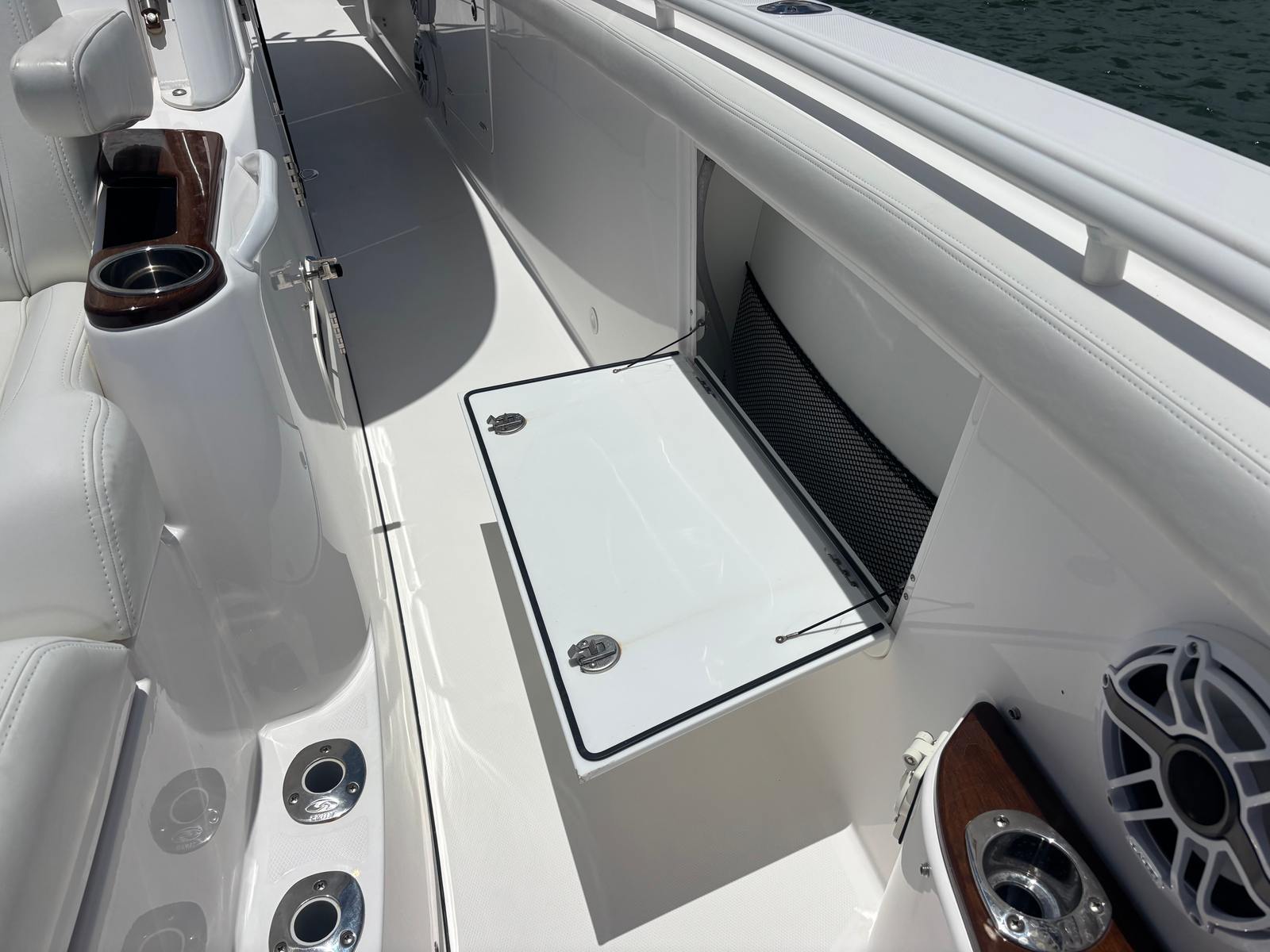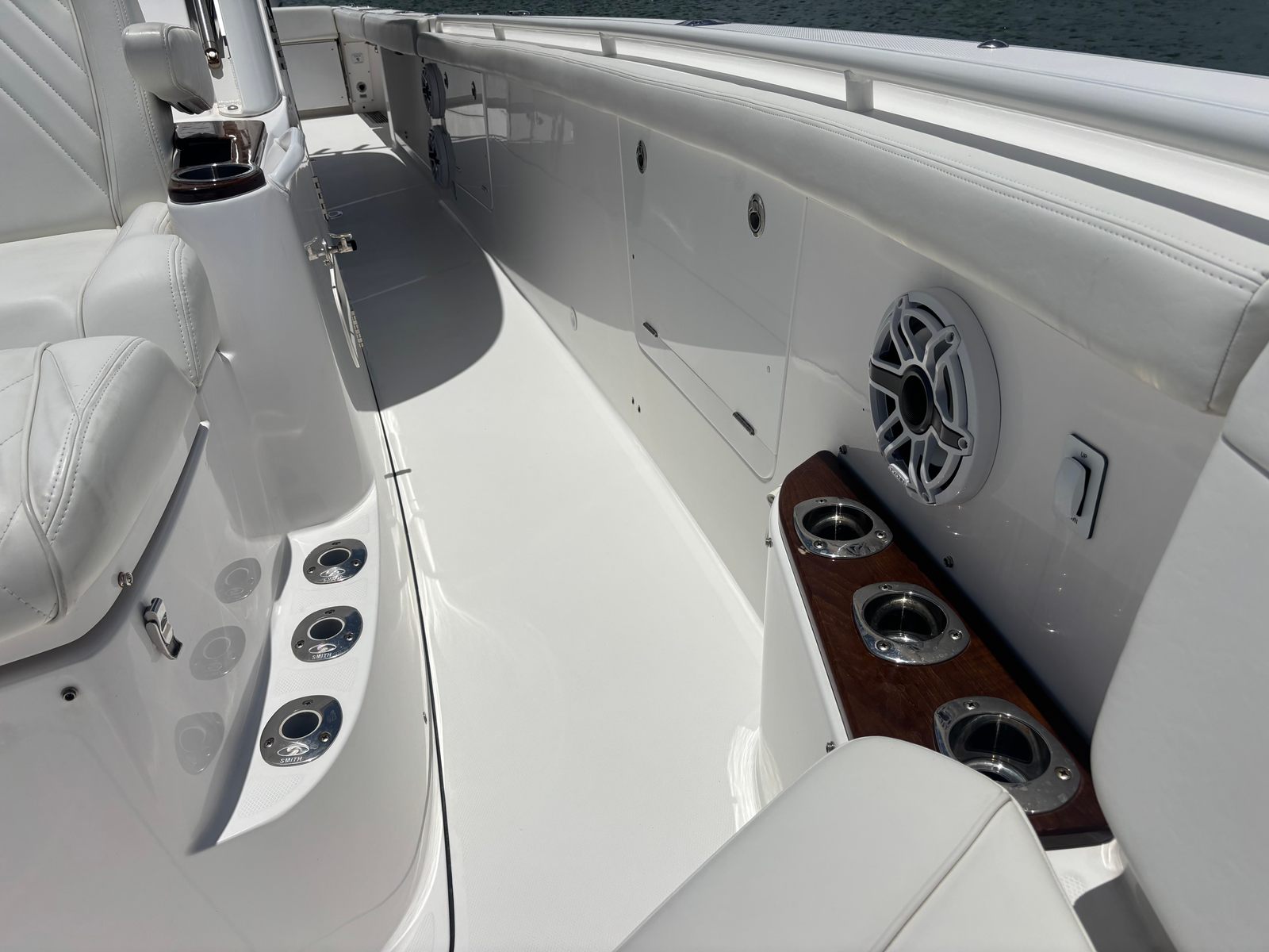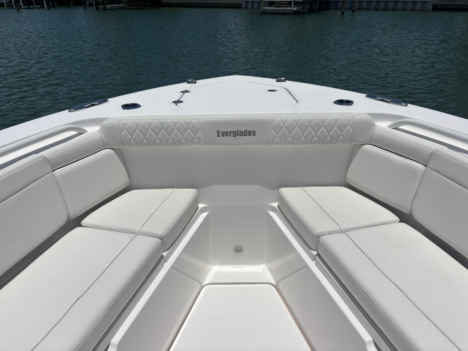 Powering the Everglades 395 CC are three high-performance engines, delivering a combined 1,275 horsepower. With only 265 engine hours, these engines offer plenty of life and reliability for years to come. The triple-engine setup ensures rapid acceleration, impressive top speeds, and smooth handling even in challenging conditions. Whether you’re cruising along the coastline, heading offshore for a fishing expedition, or enjoying a day of water sports, the Everglades 395 CC provides the power and agility you need for a thrilling ride. The advanced engineering behind this Center Console boat for sale guarantees optimal fuel efficiency and responsive maneuverability, making every journey enjoyable and stress-free.