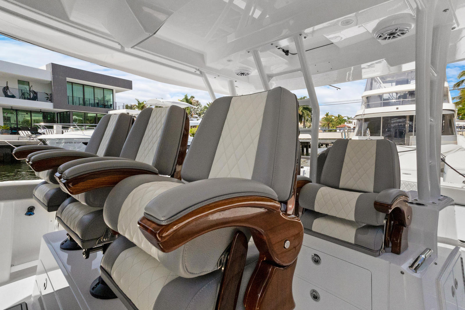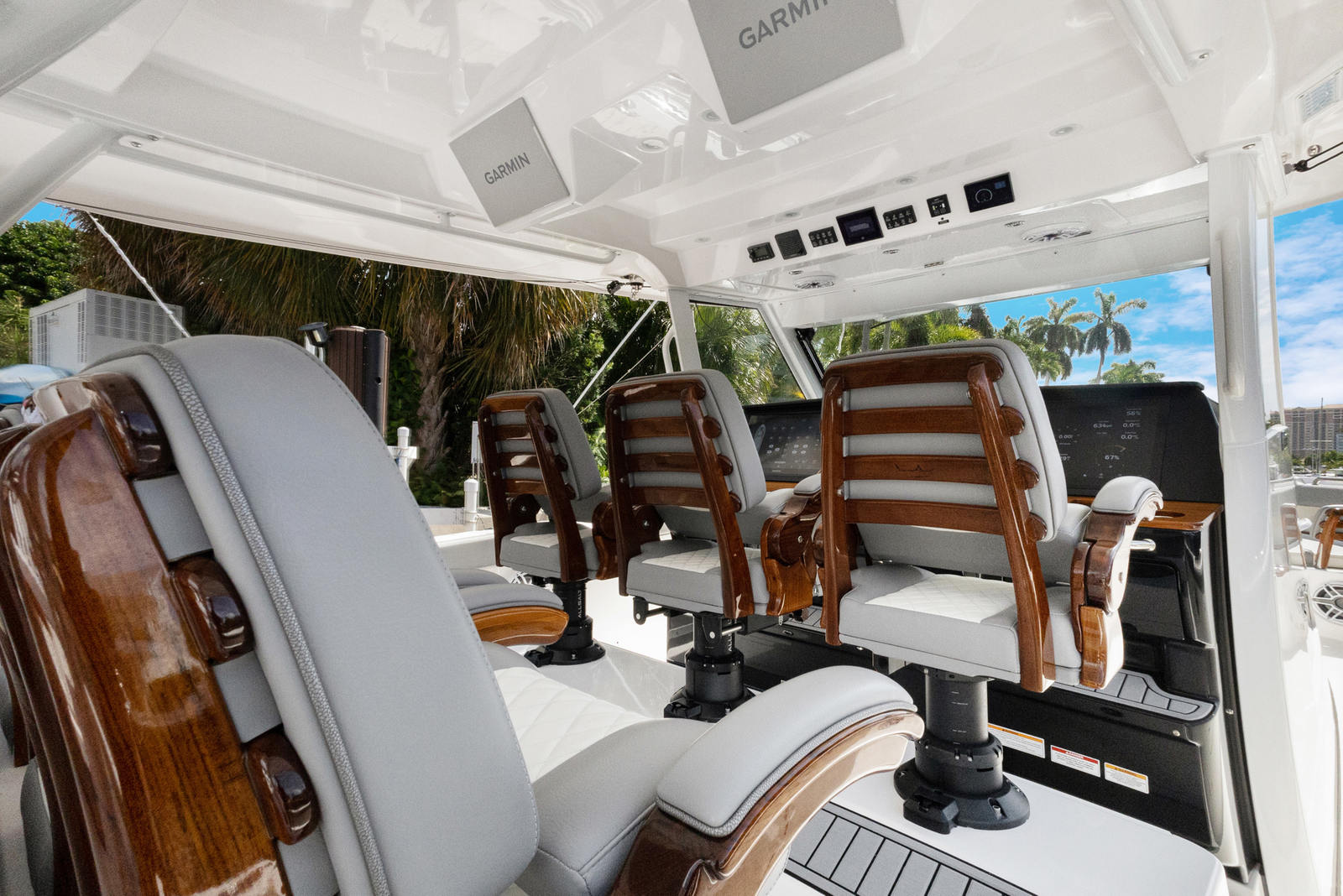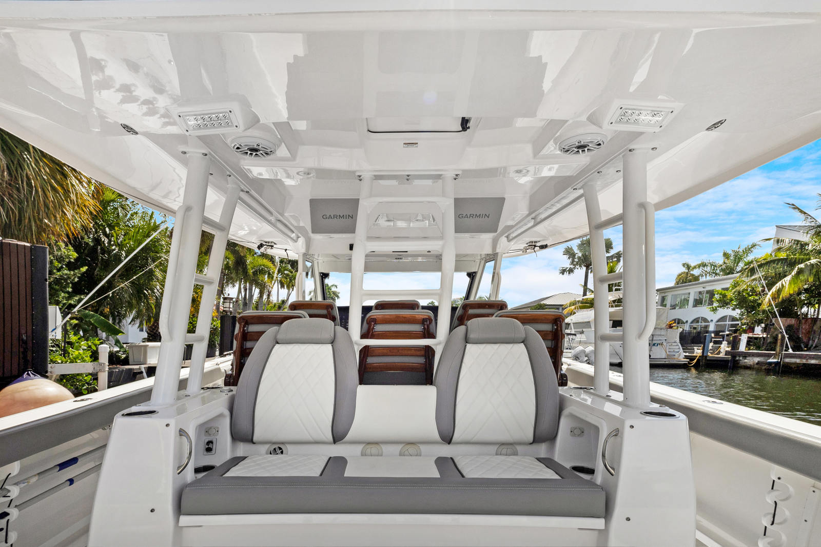 At the heart of the Everglades 455 CC are three powerful engines, delivering a combined 1800 horsepower. This impressive setup ensures exhilarating speed, smooth acceleration, and the ability to handle a variety of sea conditions with confidence. Whether you are cruising to your favorite fishing spot, island hopping, or simply enjoying a day on the water, the 455 CC’s triple-engine configuration provides the reliability and performance that serious boaters demand. The advanced hull design enhances stability and maneuverability, allowing you to navigate with ease and precision.